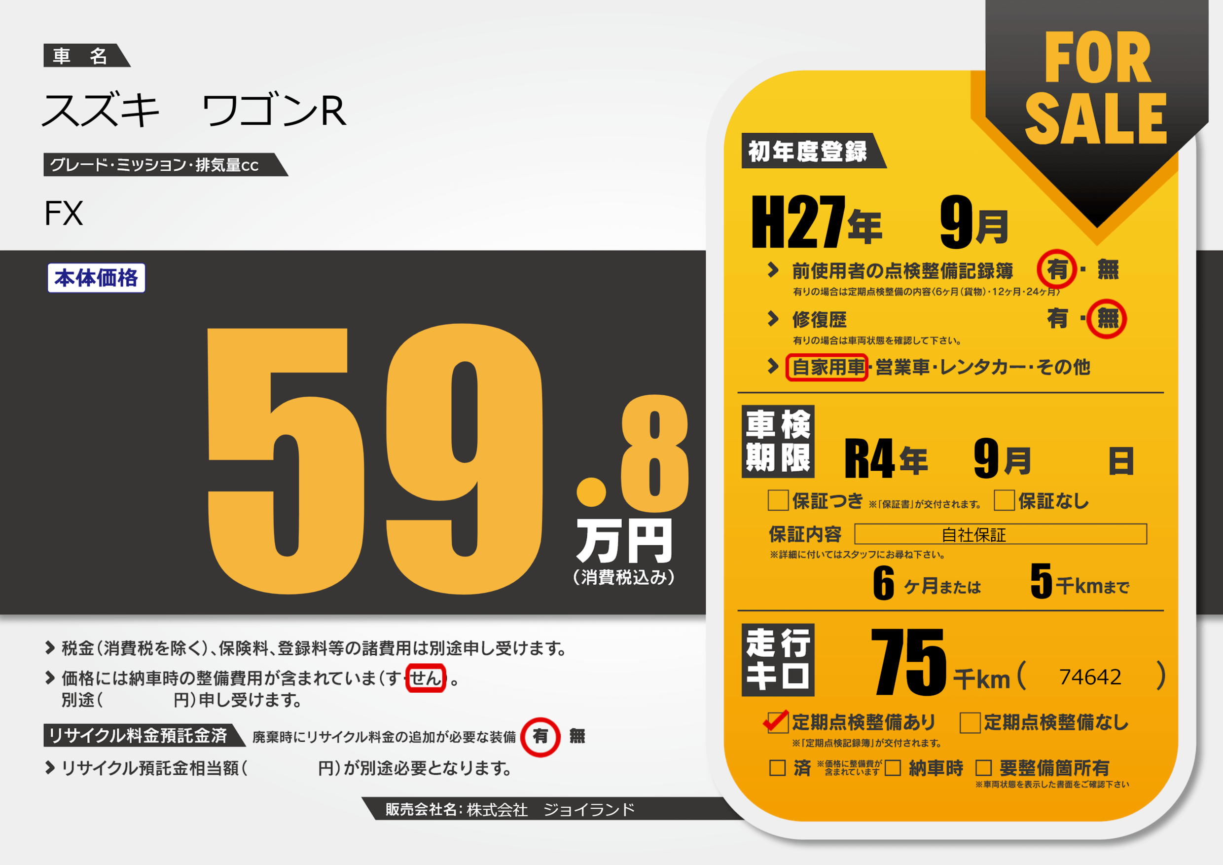 | 車名 | スズキ ワゴンR | グレード ミッション 排気量 |