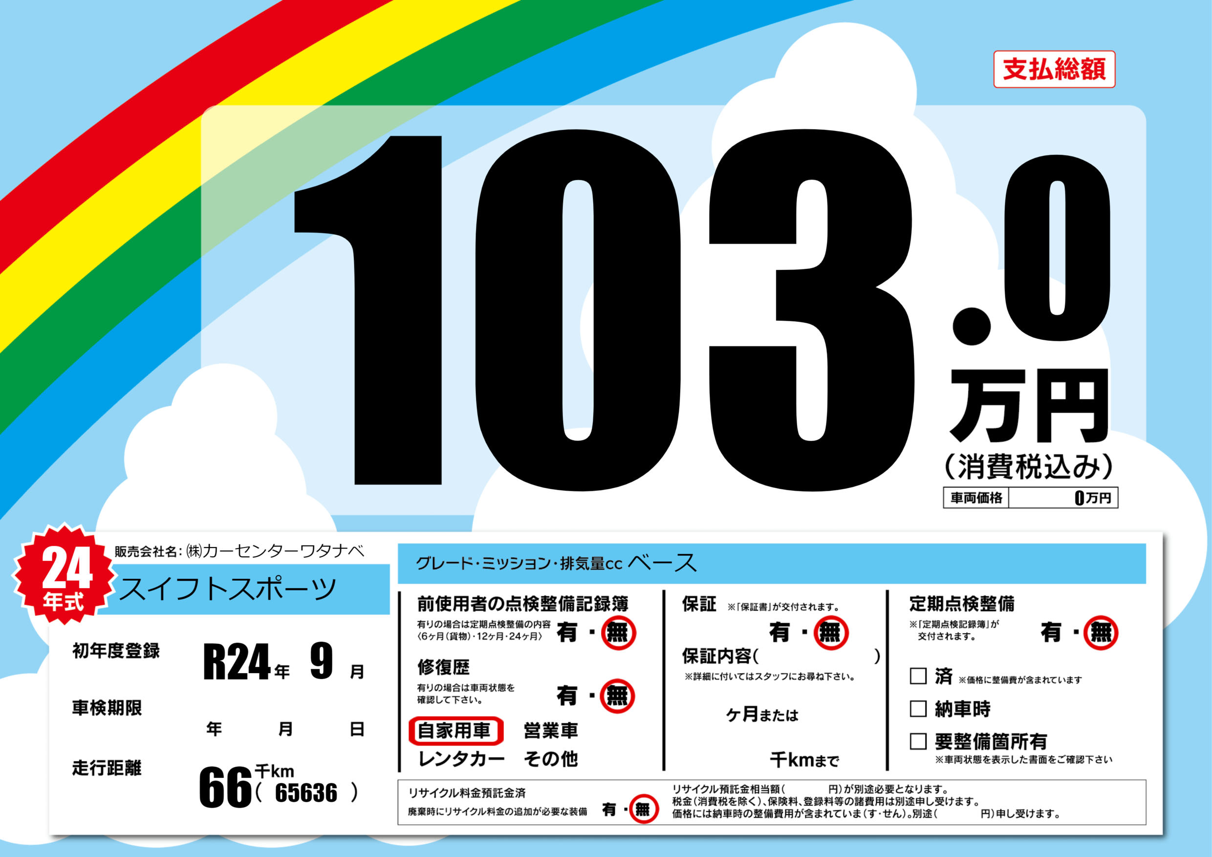 | 走行キロ | 6.6万km | 初年度登録 | R24年9月 |