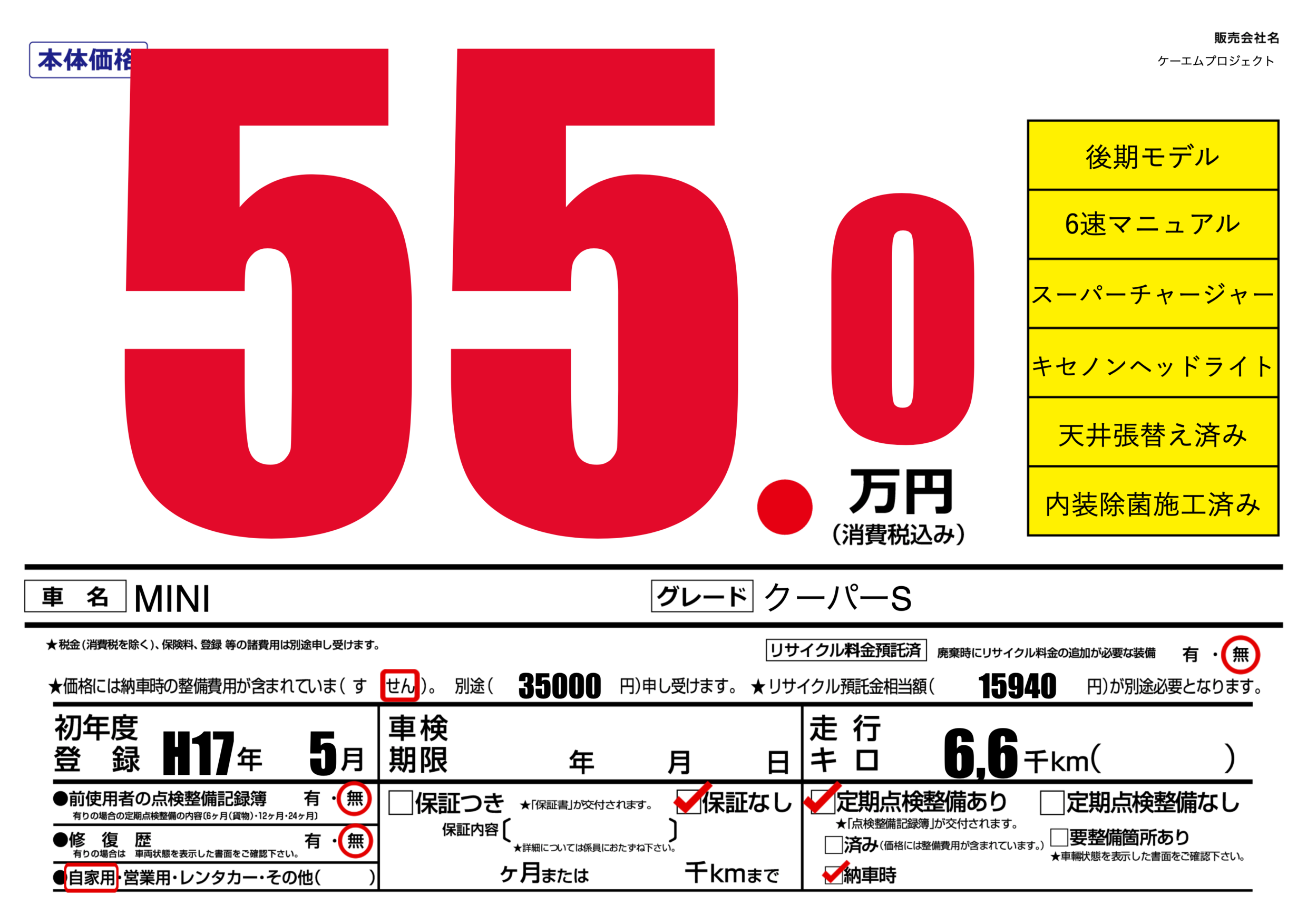 | 走行キロ | 0.6万km | 初年度登録 | H17年5月 |