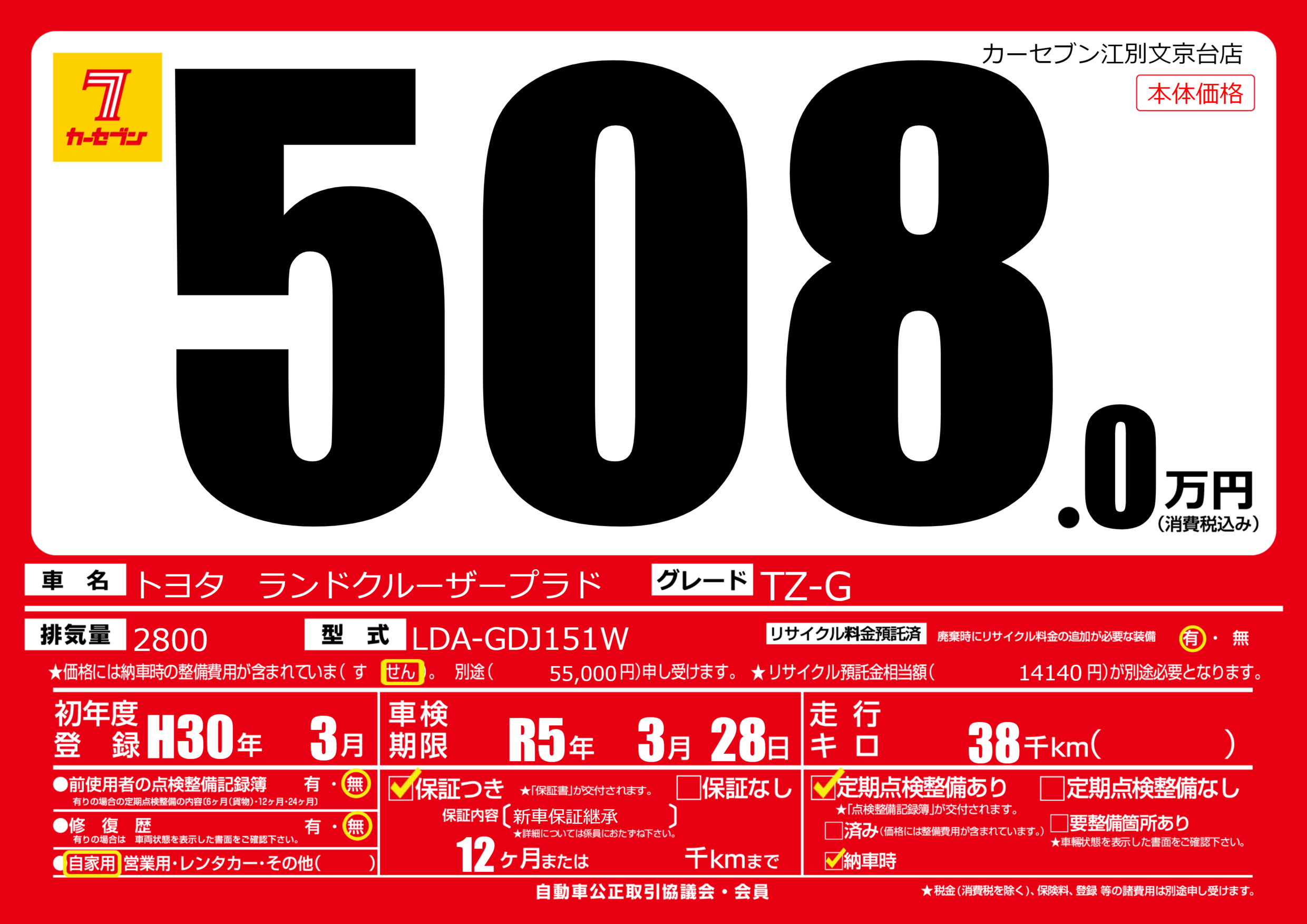 車検制限 | R5年3月28月 |