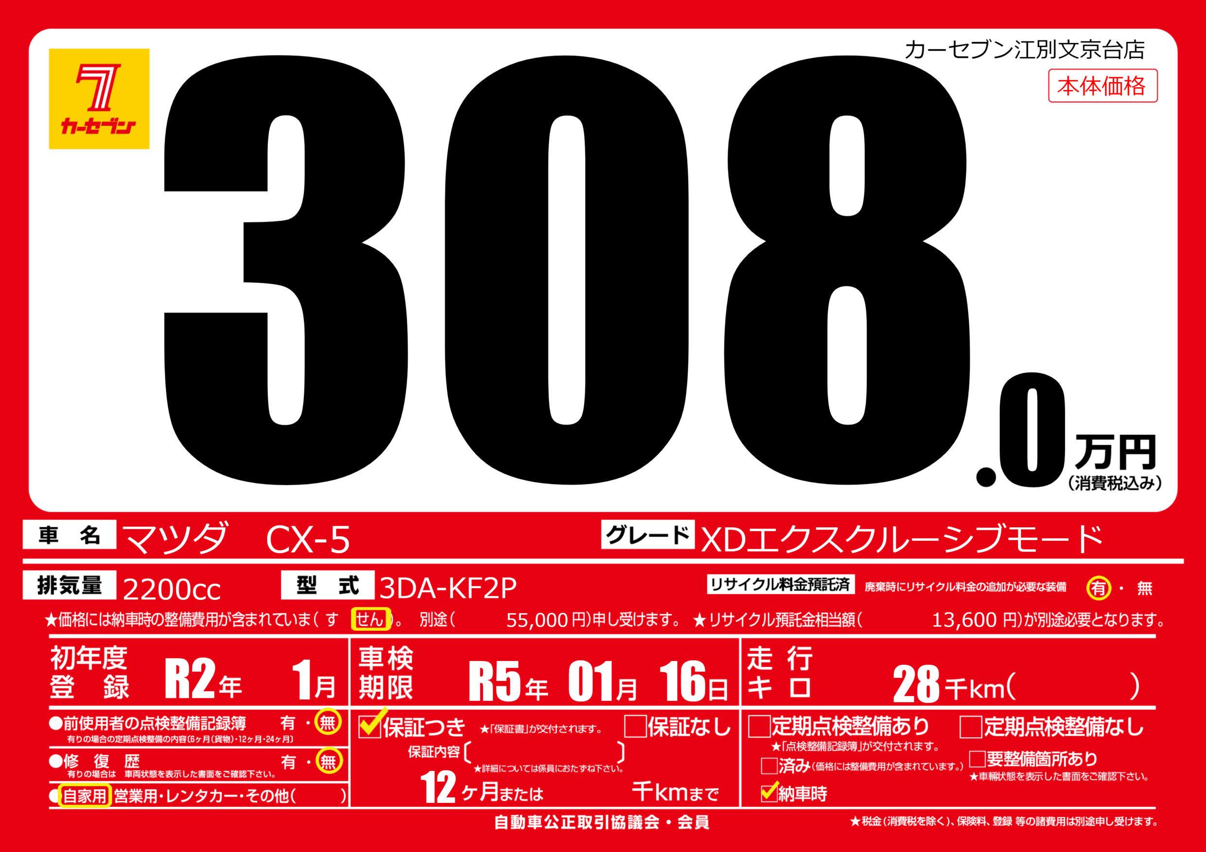 | 車名 | マツダ CX-5 | グレード ミッション 排気量 |