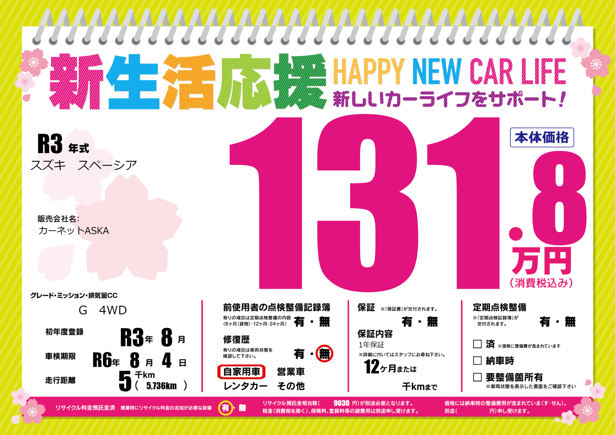 なし | 車検制限 | R6年8月4月 |
