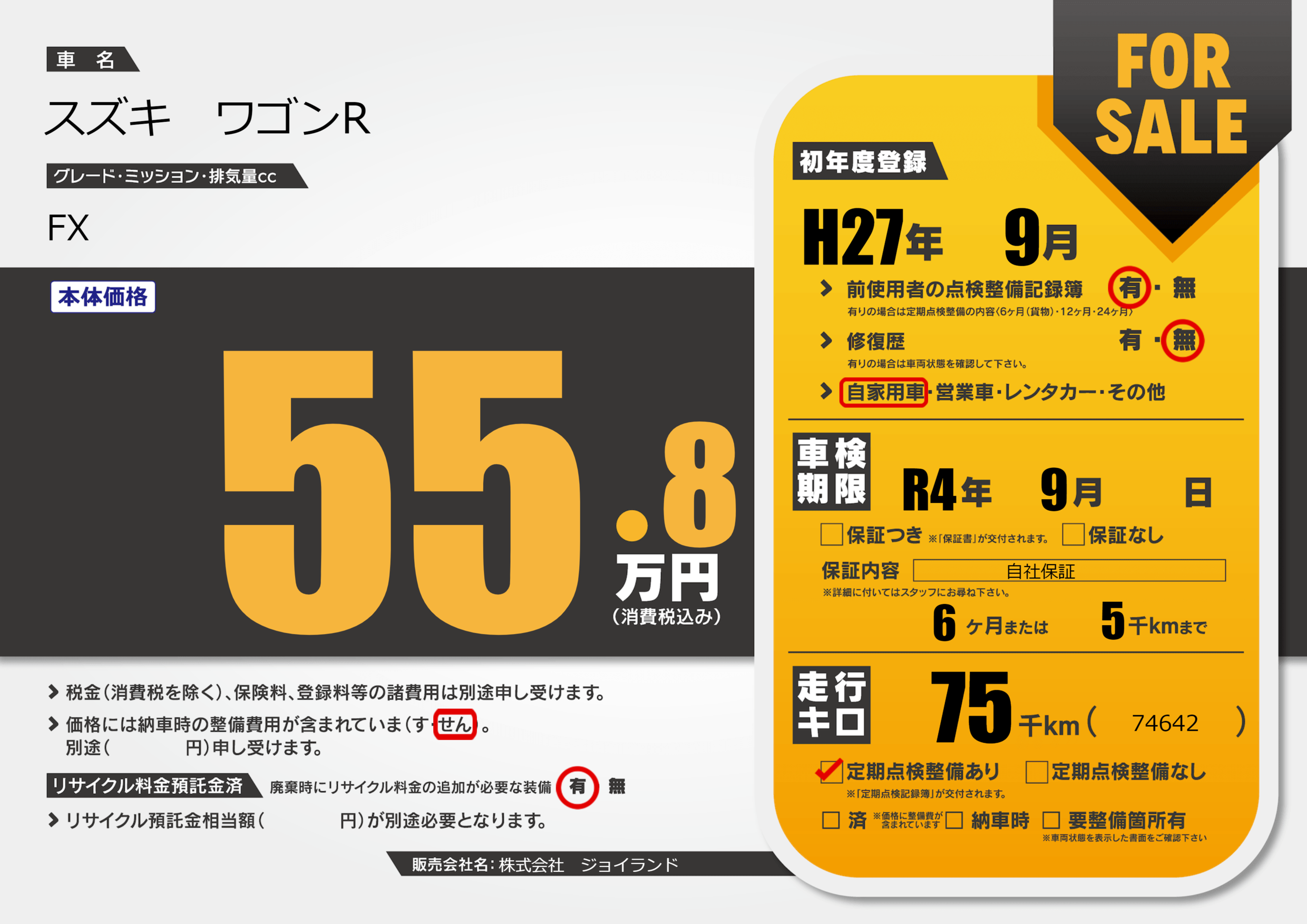 | 車名 | スズキ ワゴンR | グレード ミッション 排気量 |