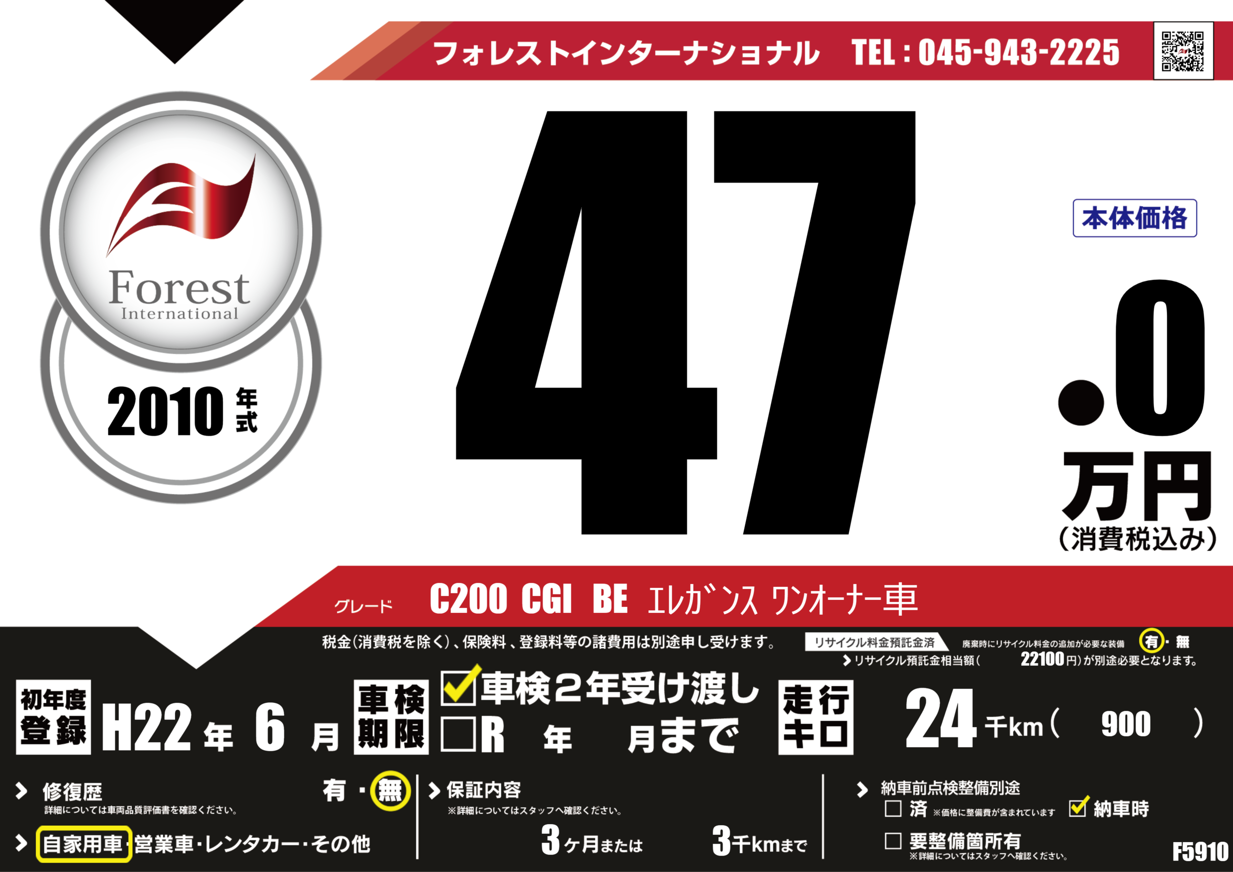 | 走行キロ | 2.4万km | 初年度登録 | H22年6月 |