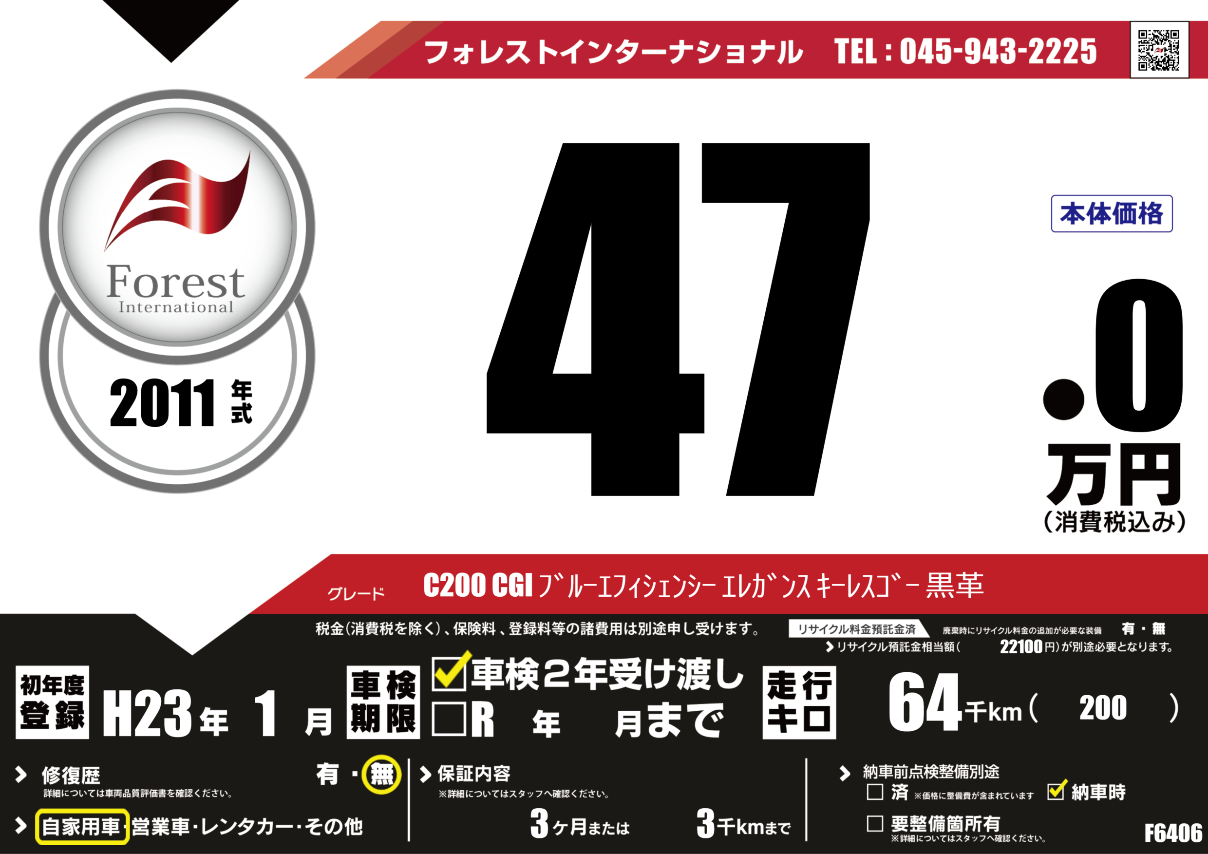 | 走行キロ | 6.4万km | 初年度登録 | H23年1月 |