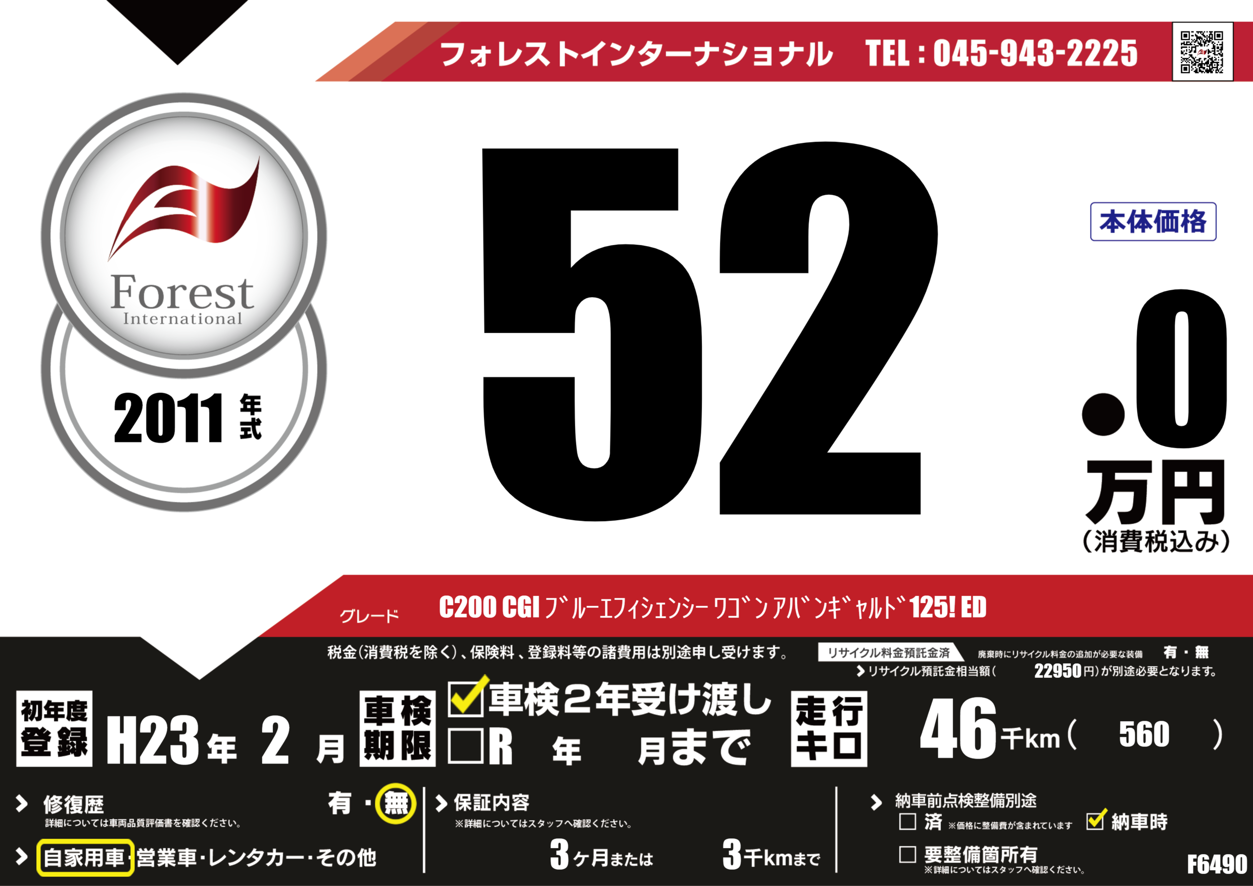 | 走行キロ | 4.6万km | 初年度登録 | H23年2月 |