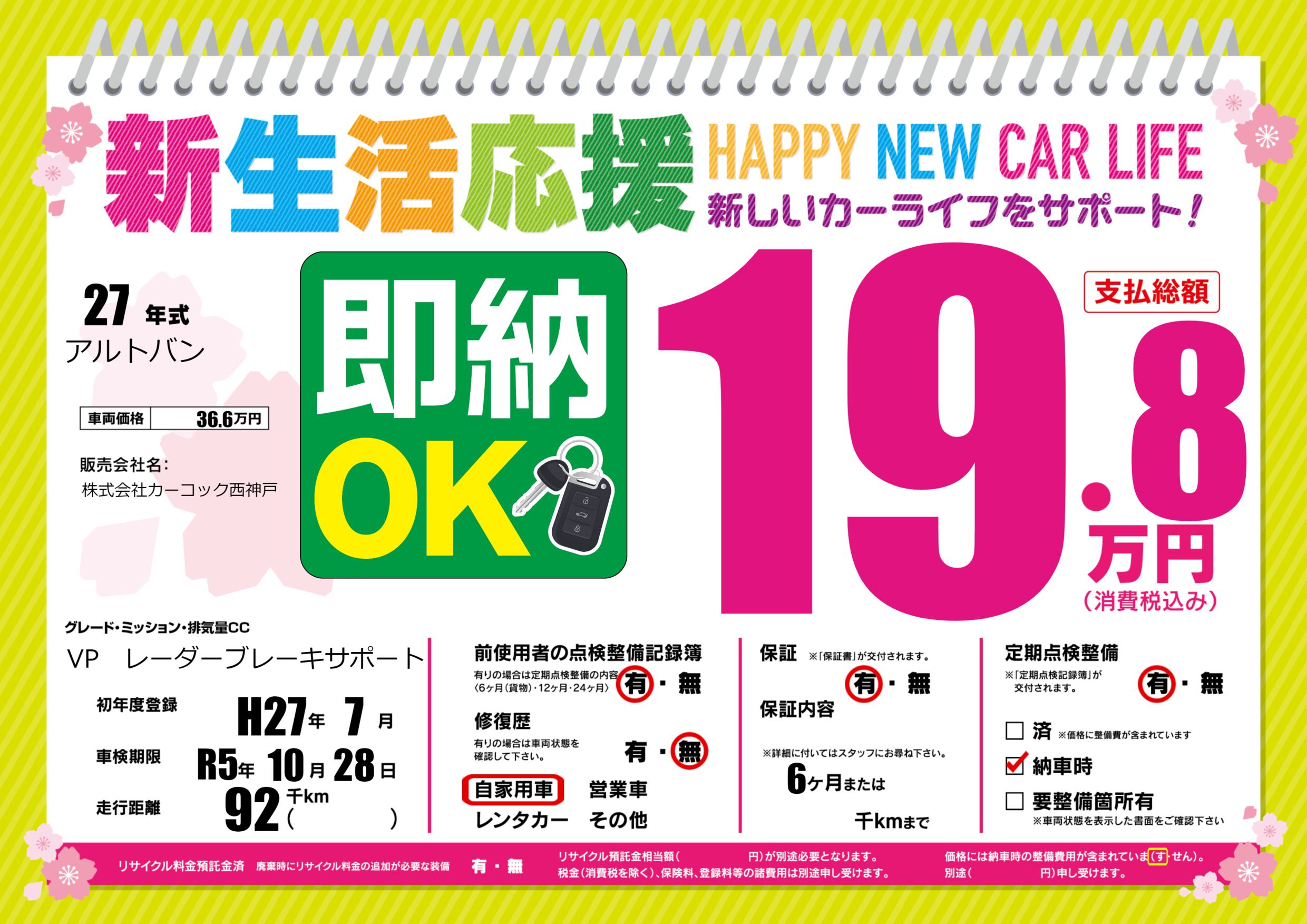 | 定期点検整備 | 定期点検整備あり 納車時あり | ||