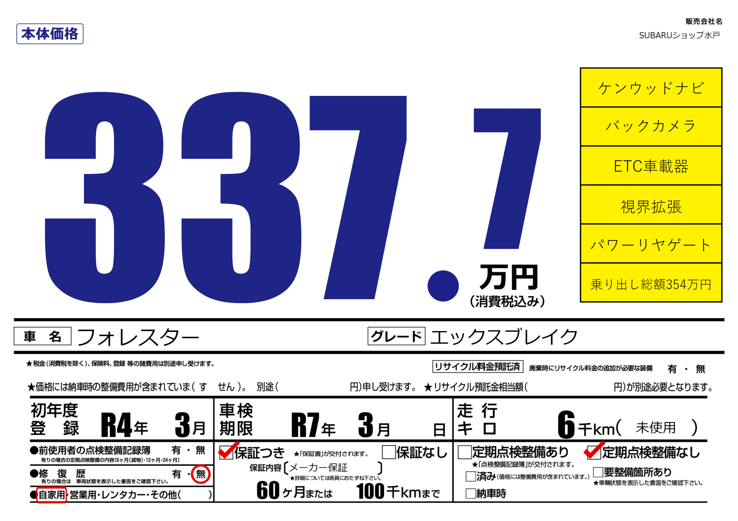 | 車検制限 | R7年 3月 - 日 | ||