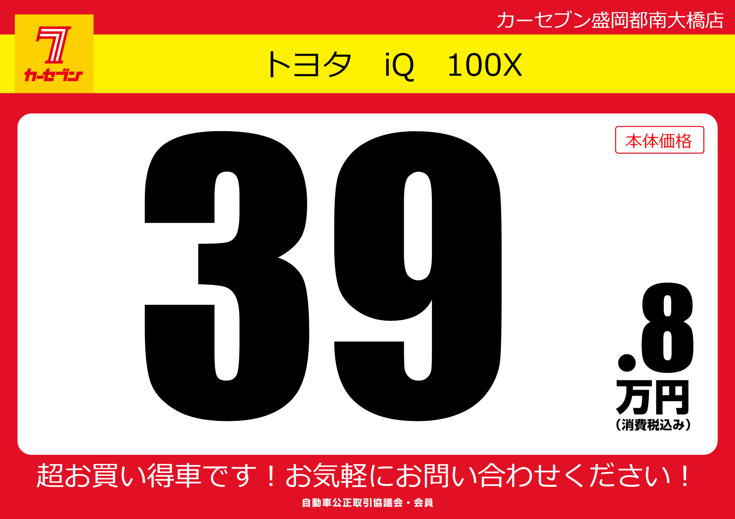 | 車名 | トヨタ iQ 100X | グレード ミッション 排気量 |