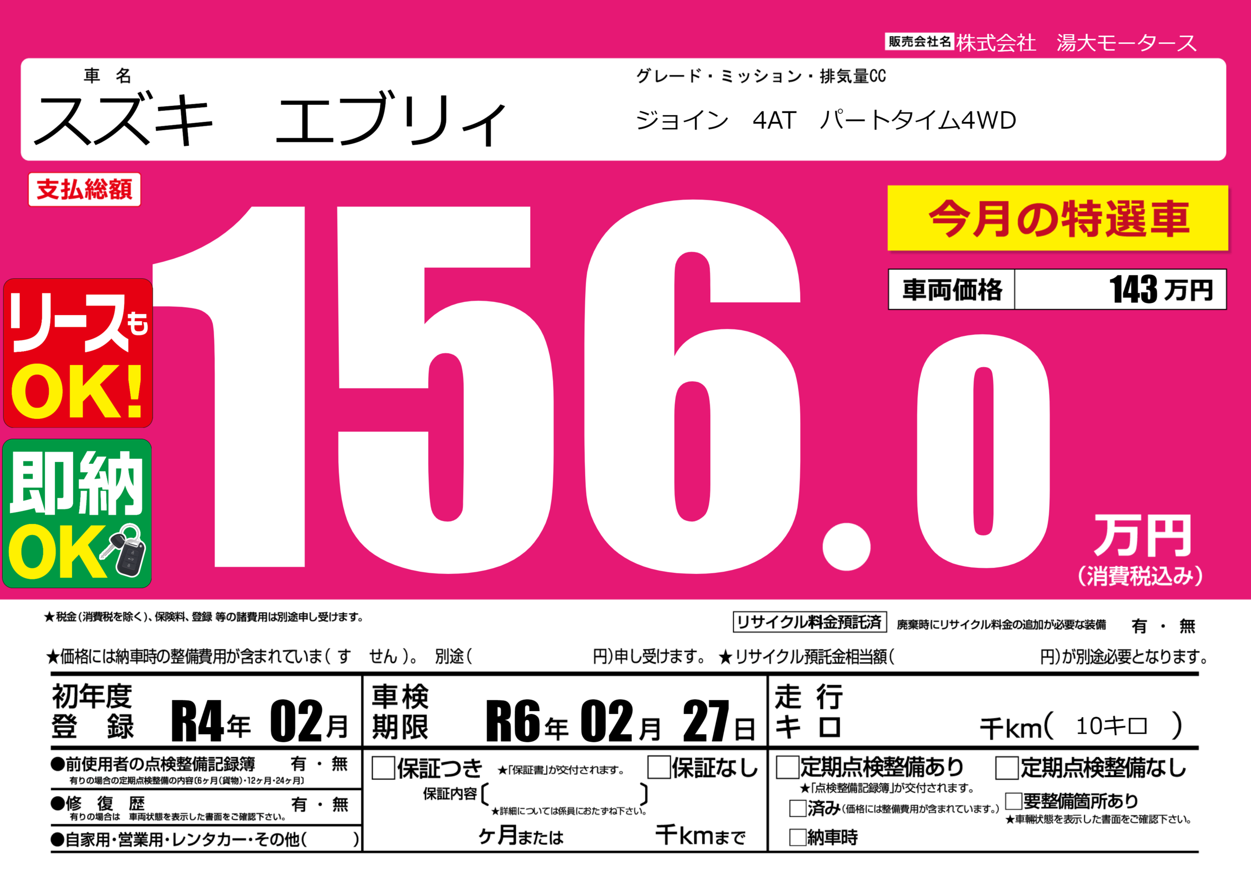 | 車検制限 | R6年 02月 27日 | ||