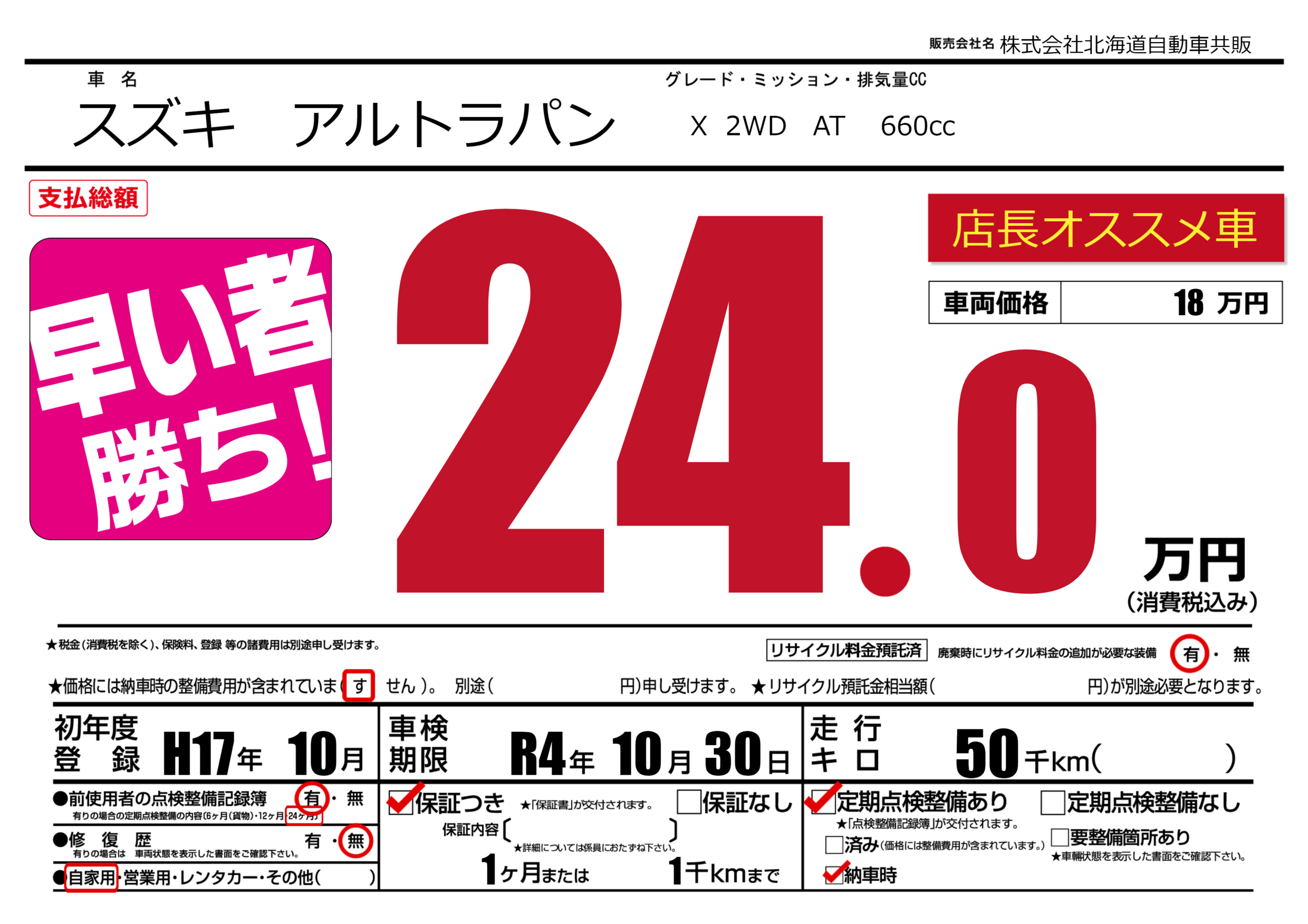 | 走行キロ | 5万km | 初年度登録 | H17年10月 |