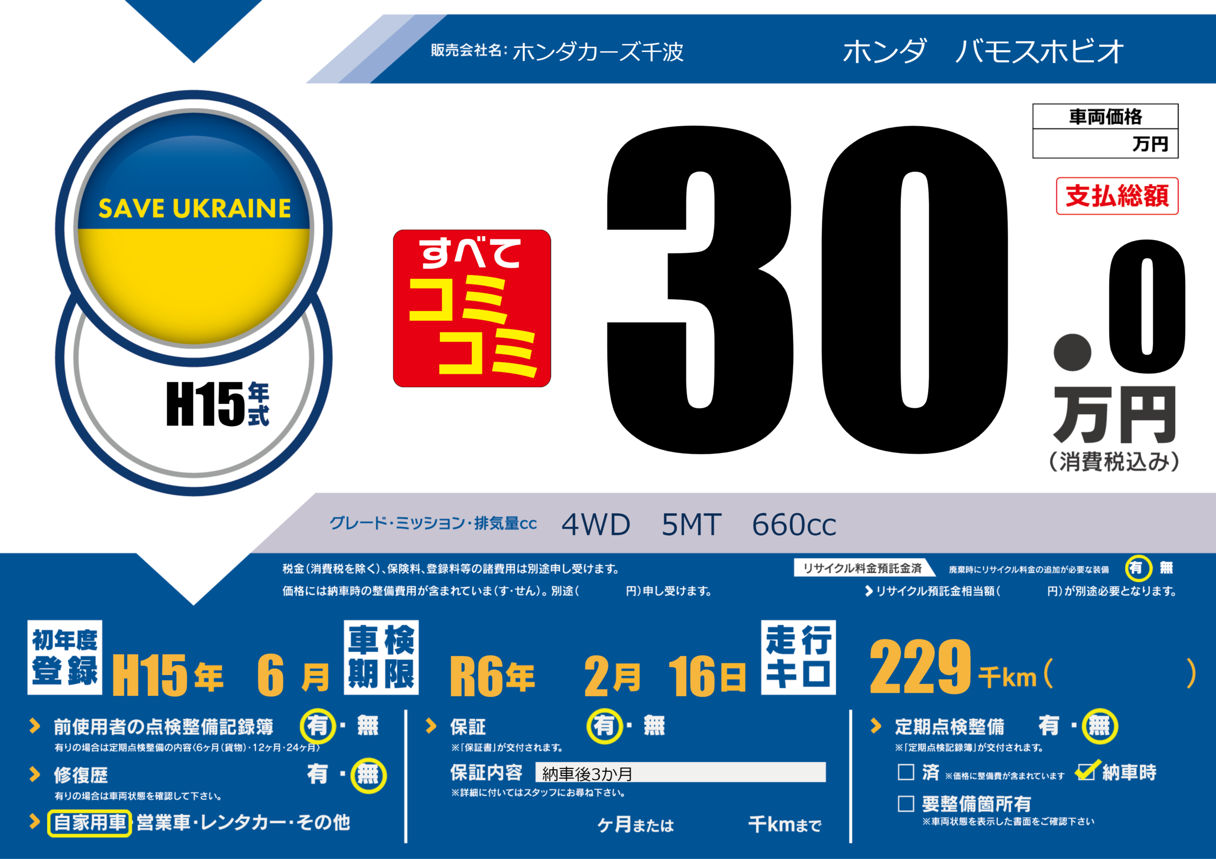 初年度登録 H15年6月