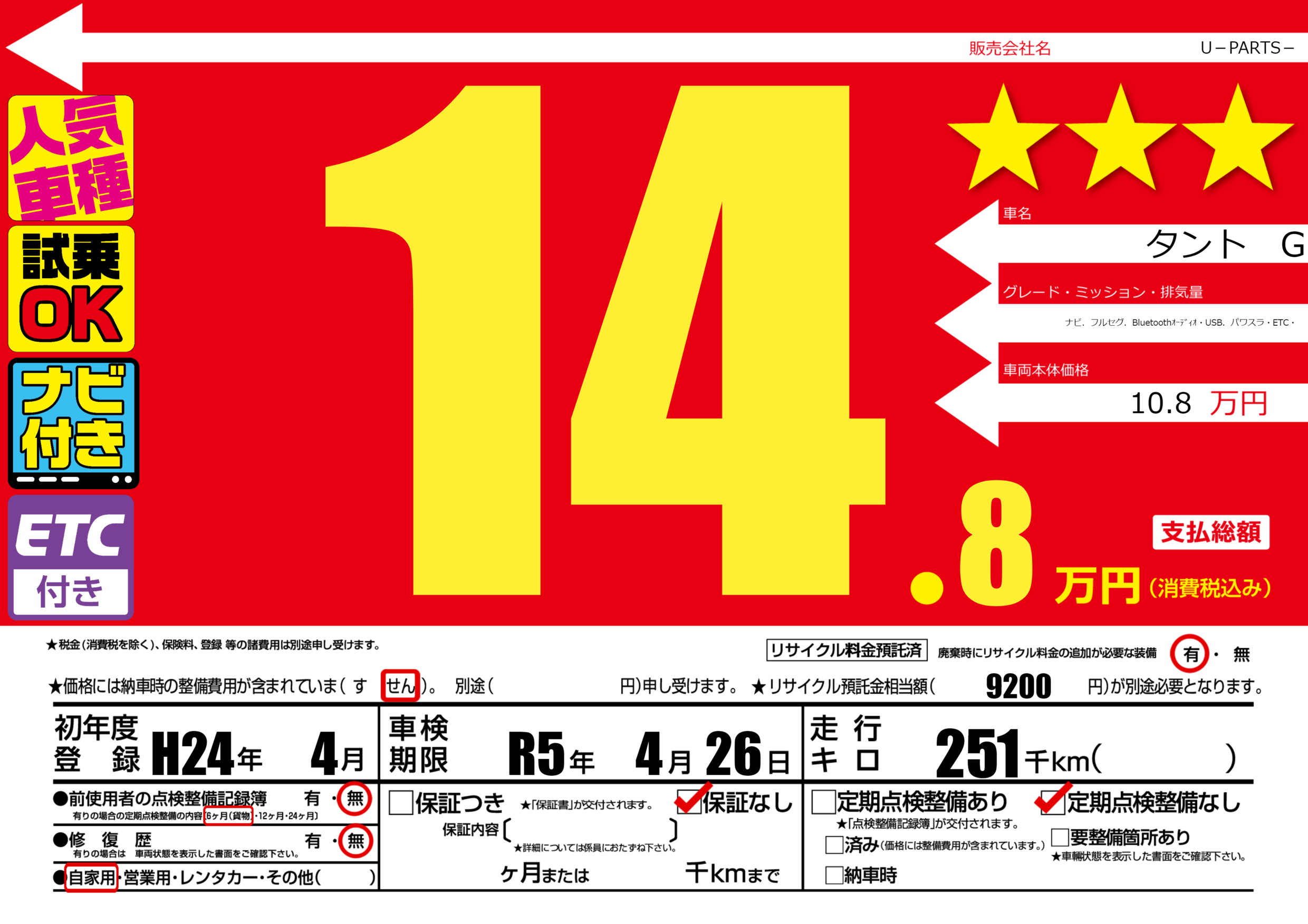あり | リサイクル預託金相当額 | ( 1円)が別途必要 |