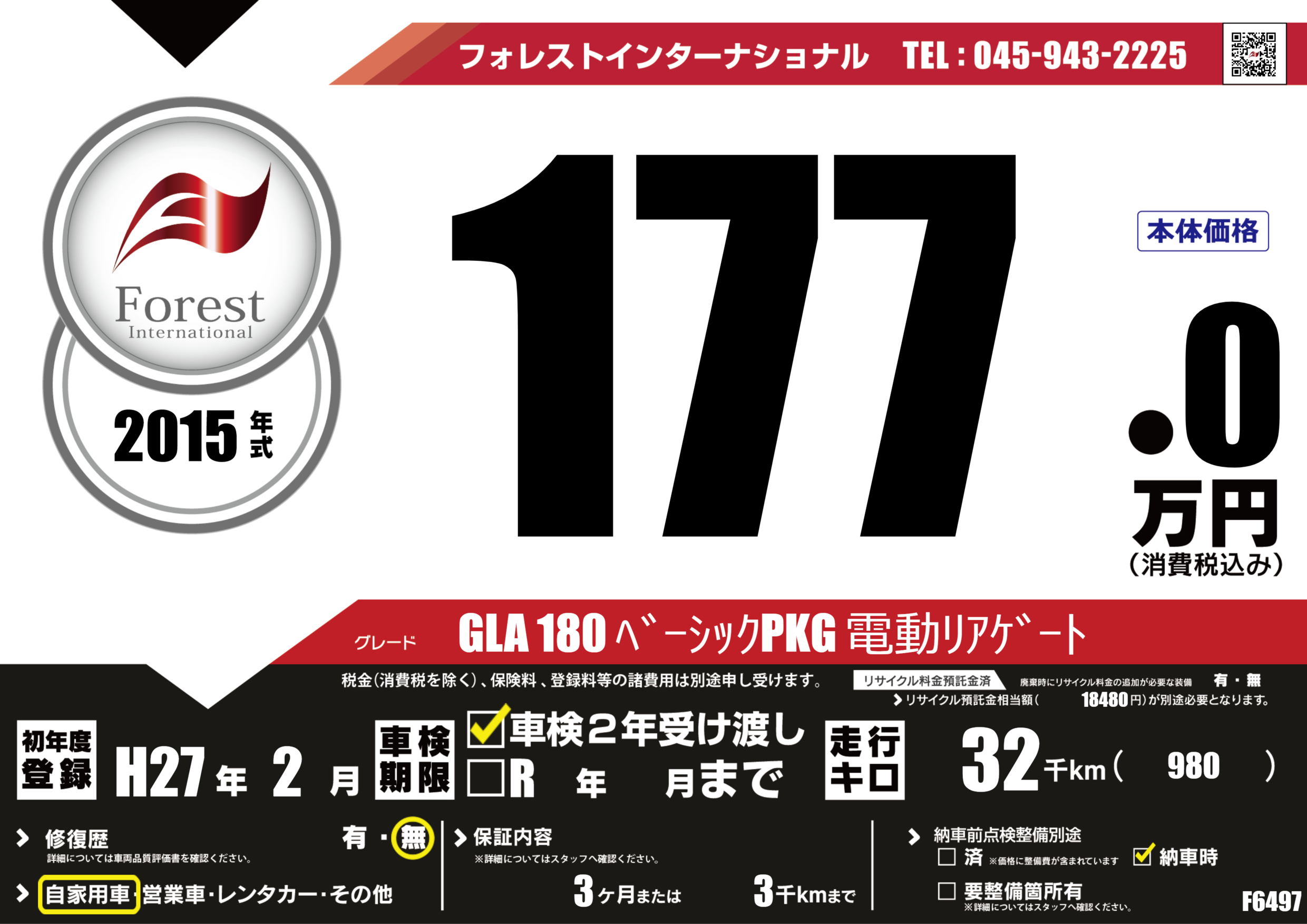 | 走行キロ | 3.2万km | 初年度登録 | H27年2月 |