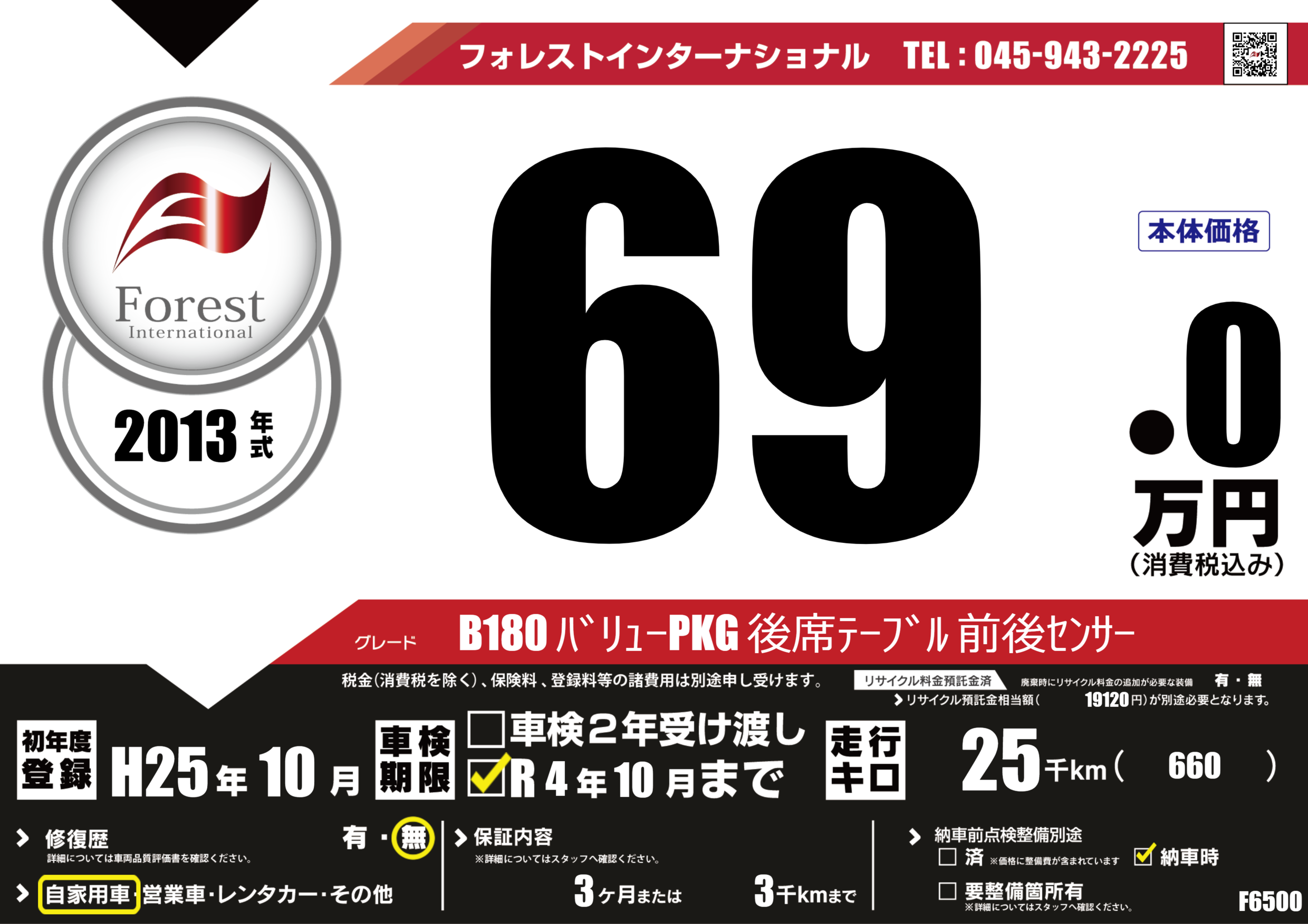 | 走行キロ | 2.5万km | 初年度登録 | H25年10月 |