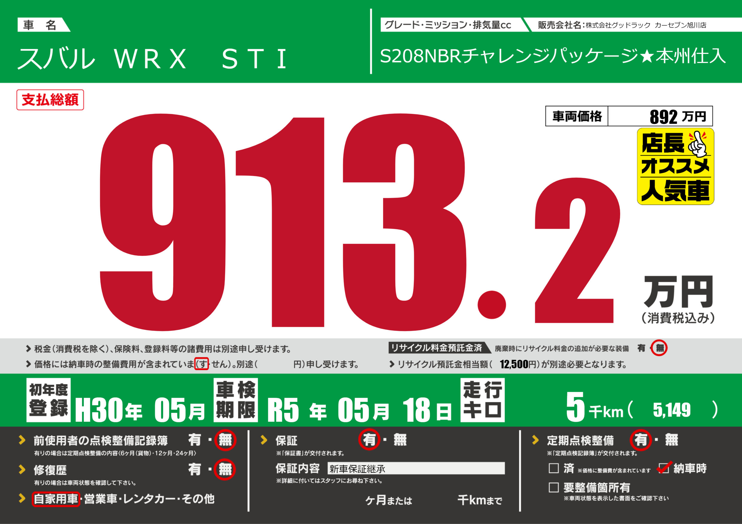 あり | 車検制限 | R5年05月18月 |