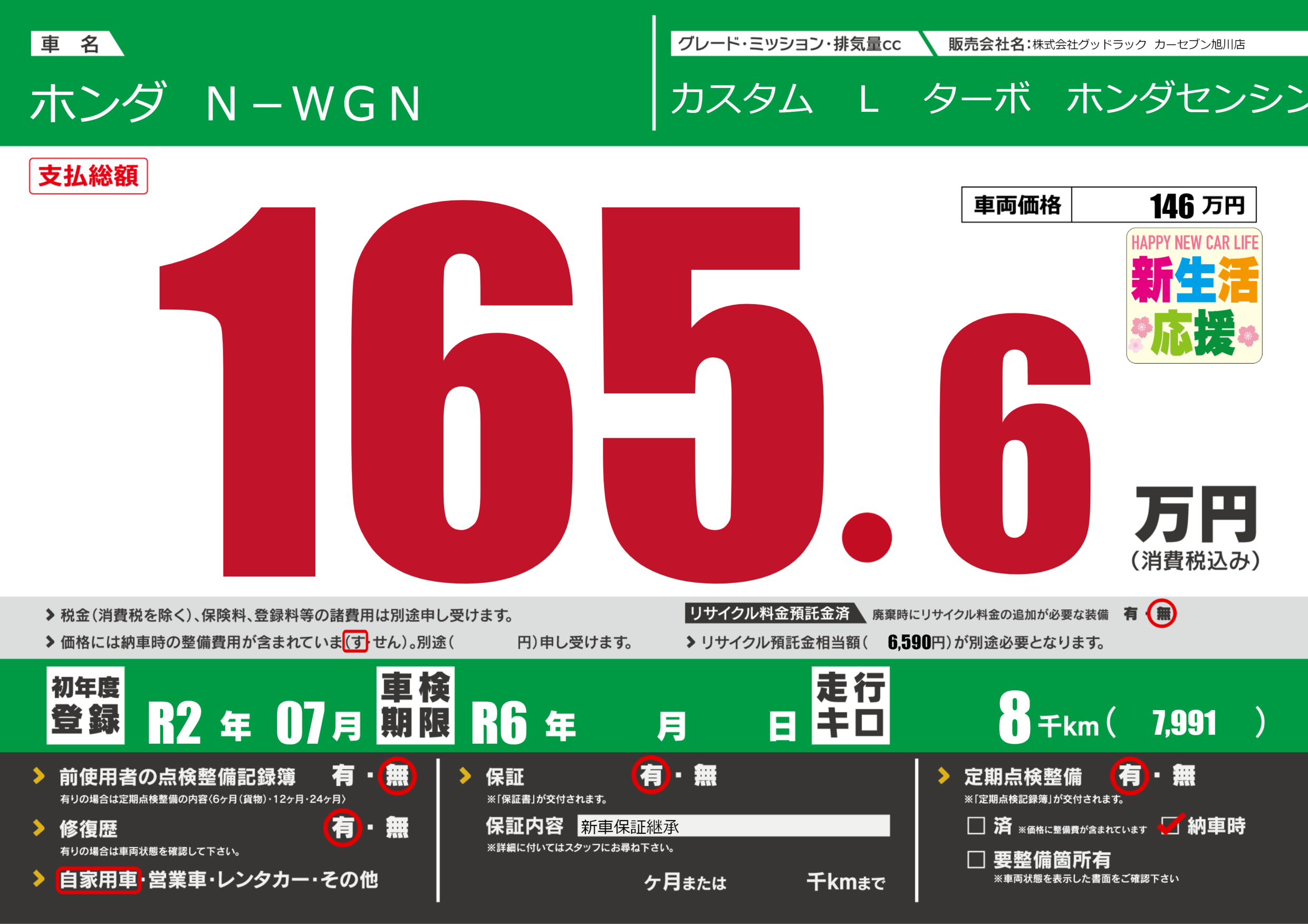 | 車名 | ホンダ N-WGN | グレード ミッション 排気量 |