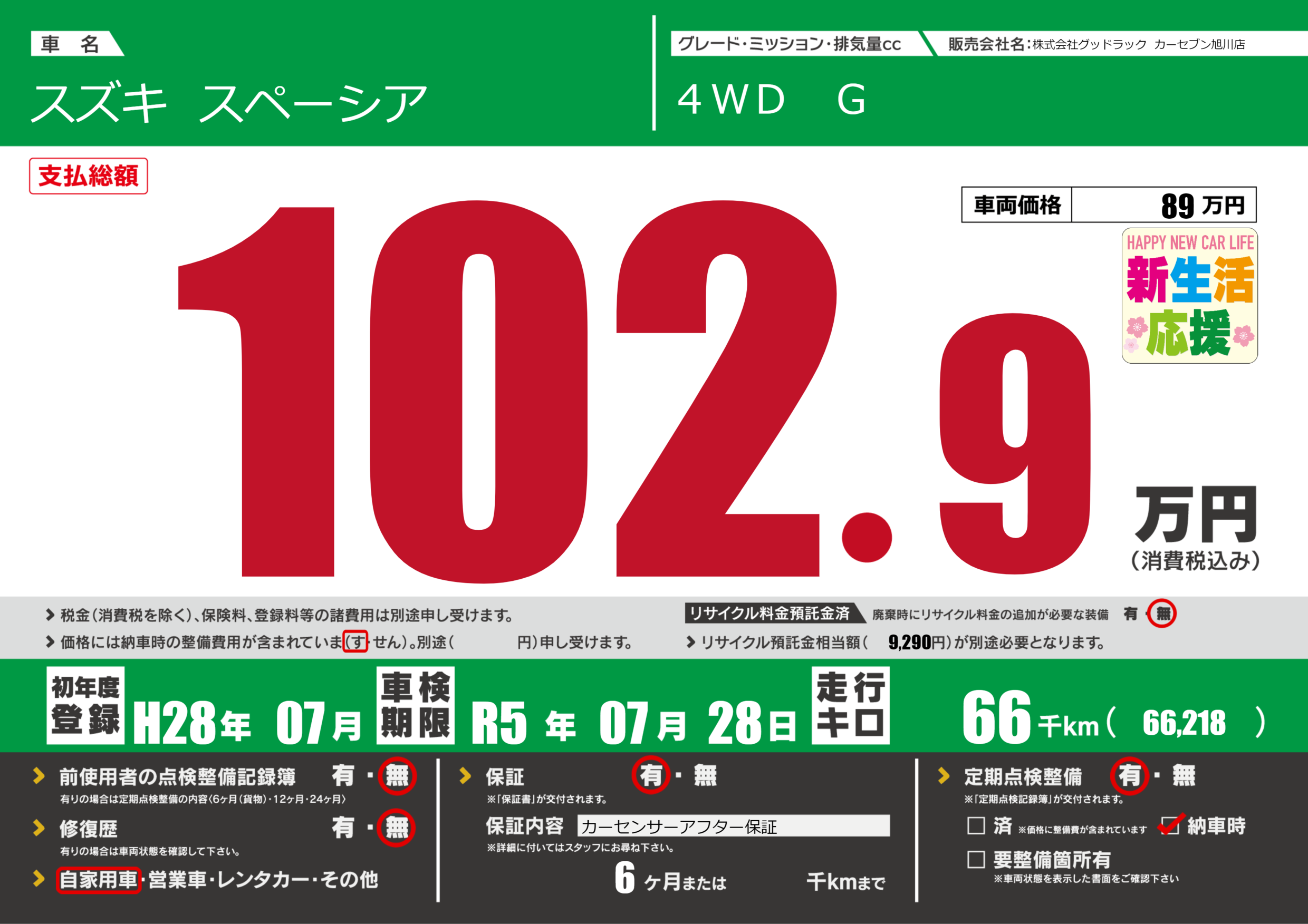 | 定期点検整備 | 定期点検整備あり 納車時あり | ||