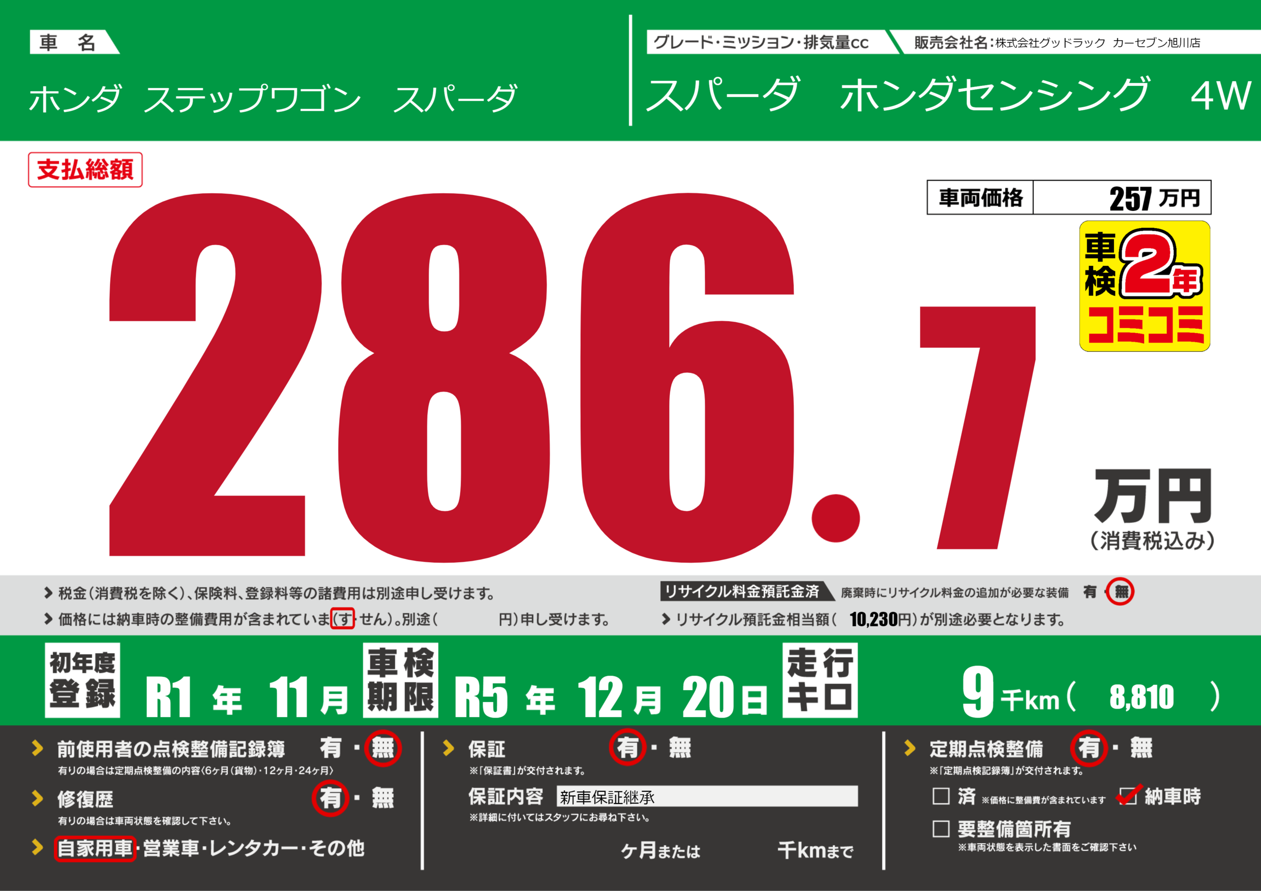| 定期点検整備 | 定期点検整備あり 納車時あり | ||