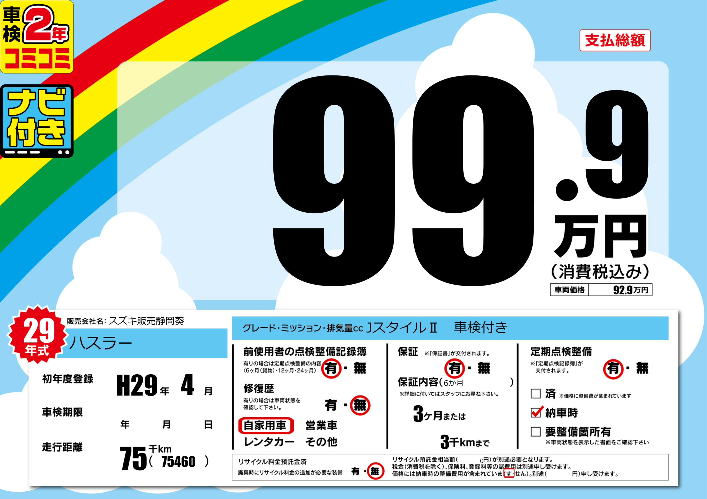 | 車名 | ハスラー | グレード ミッション 排気量 |