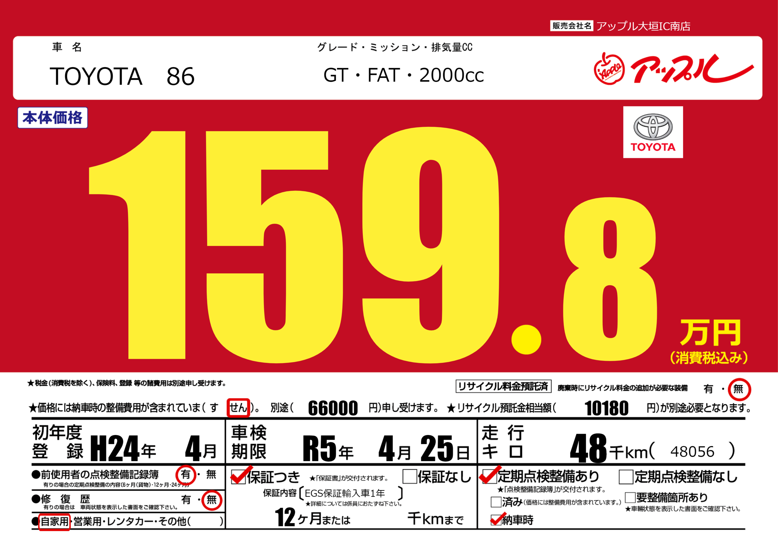 | 走行キロ | 4.8万km | ||