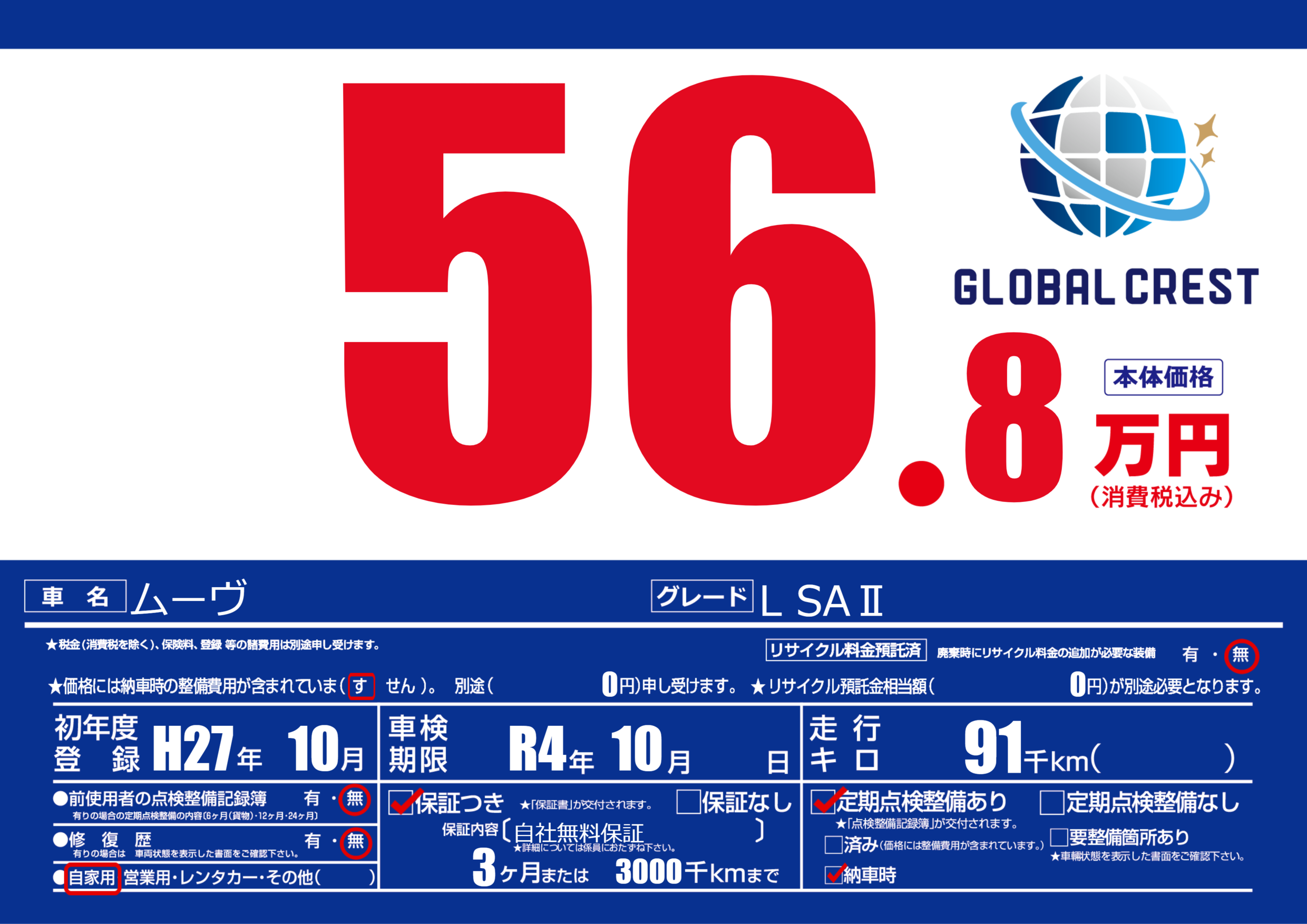 | 車名 | ムーヴ | グレード ミッション 排気量 |