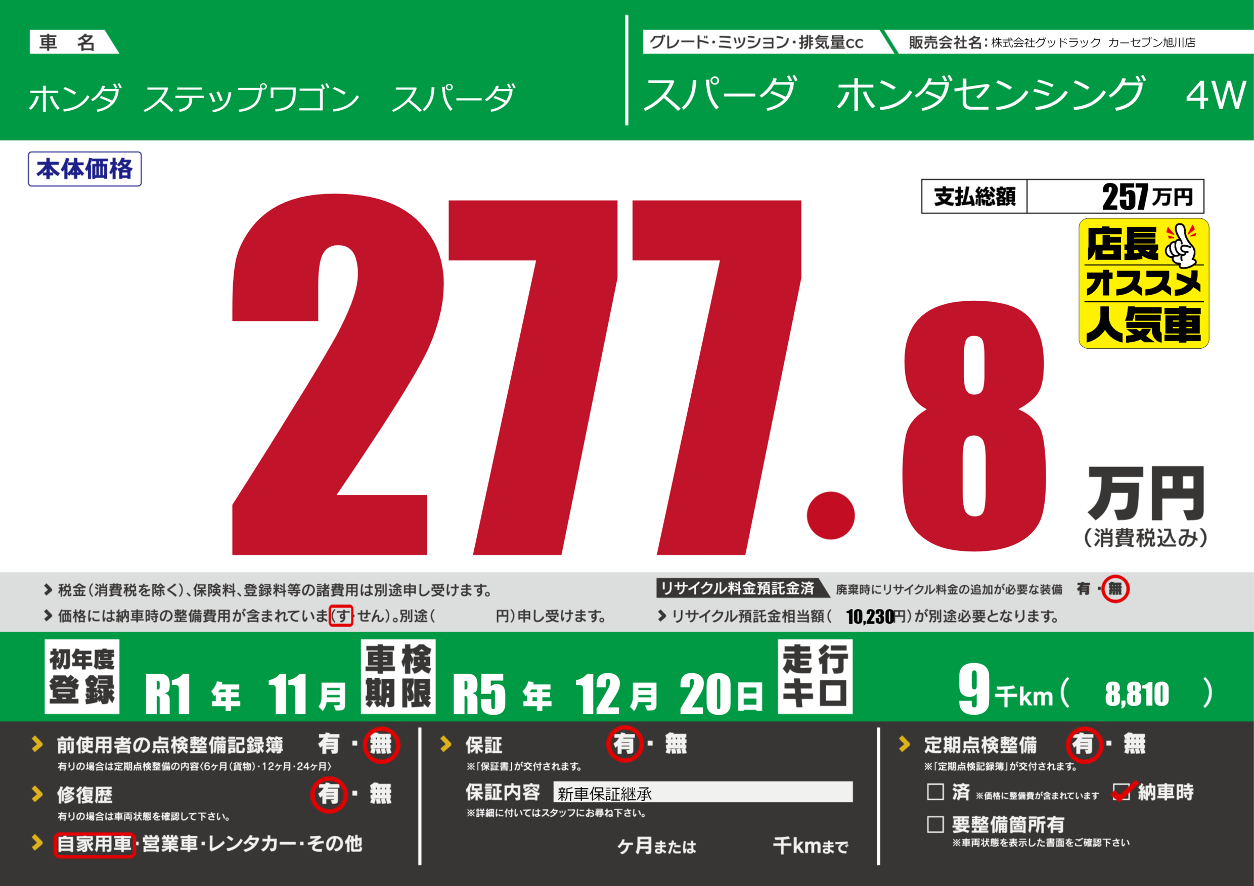 | 車名 | ホンダ ステップワゴン スパーダ | グレード ミッション 排気量 |