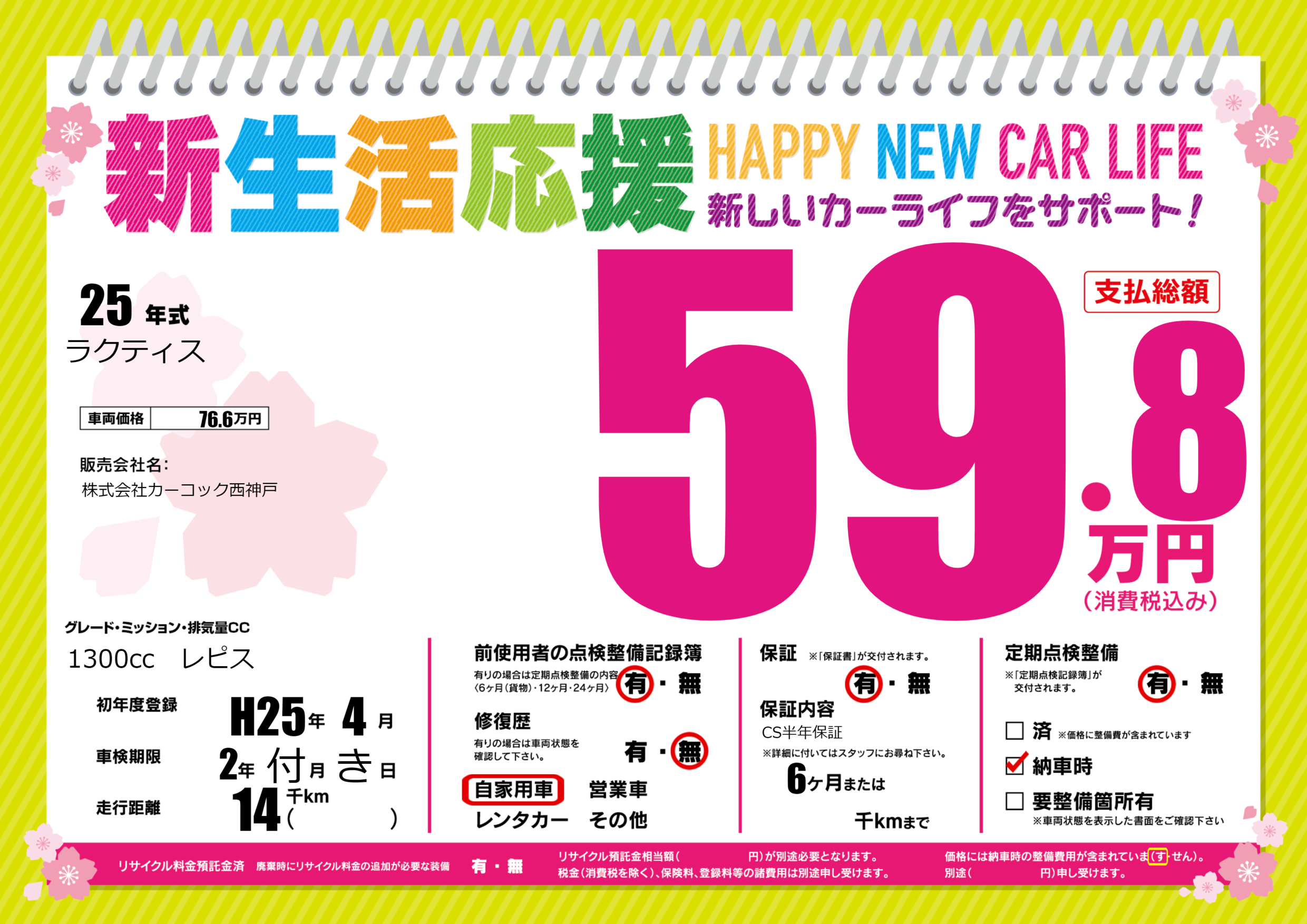 | 定期点検整備 | 定期点検整備あり 納車時あり | ||