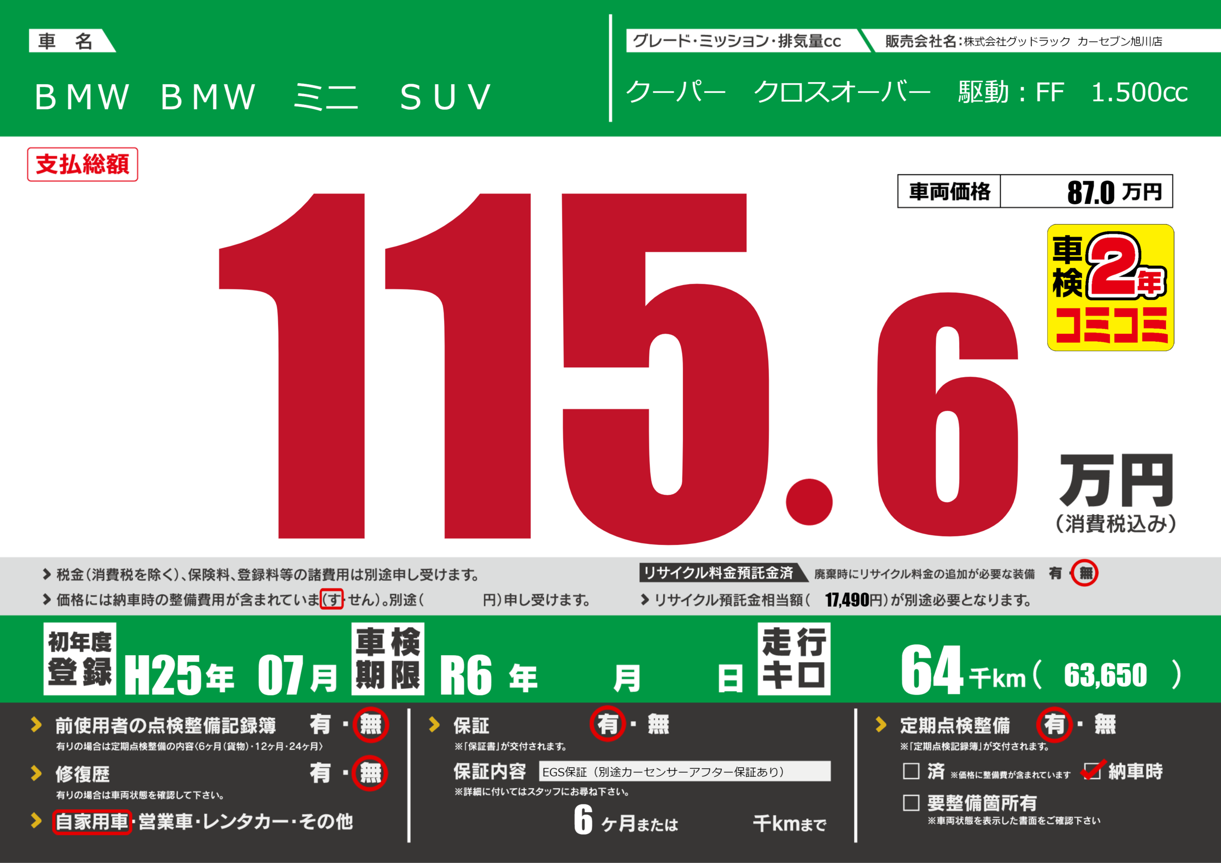 クーパー クロスオーバー 駆動:FF 1.500㏄ |