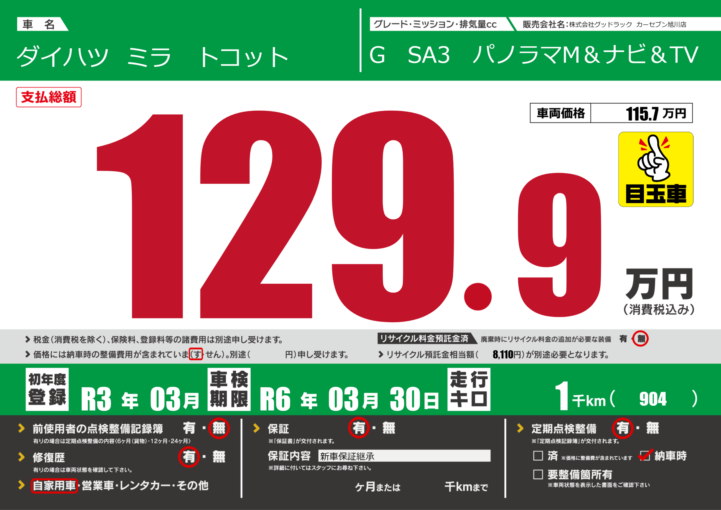 | 車検制限 | R6年 03月 30日 | ||
