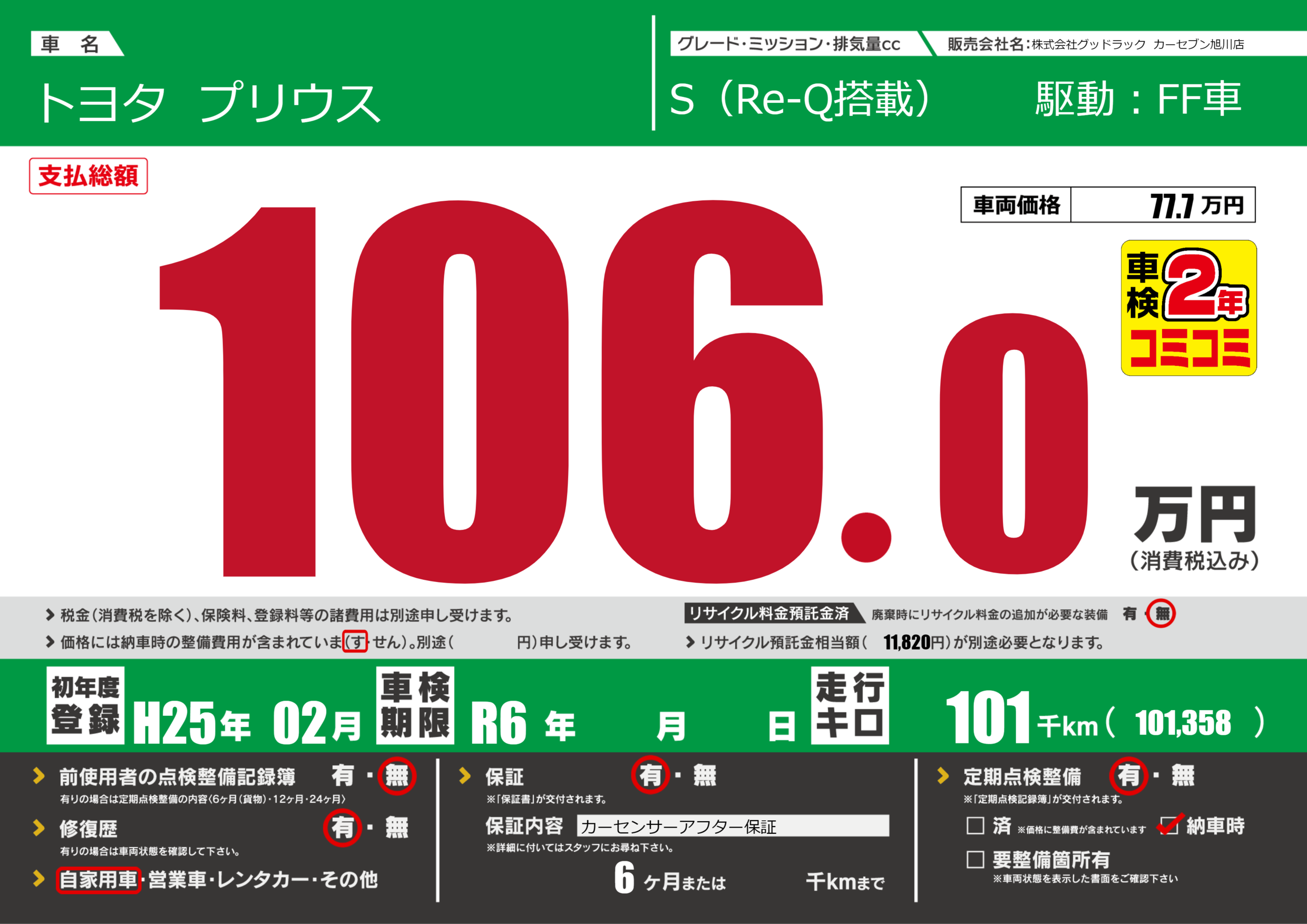 | 定期点検整備 | 定期点検整備あり 納車時あり | ||