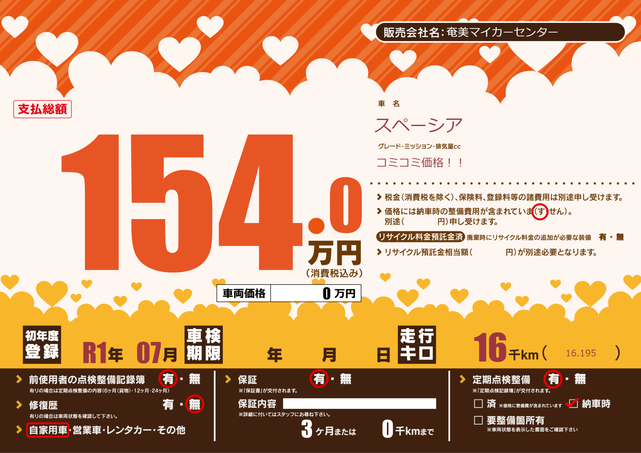 | 定期点検整備 | 定期点検整備あり 納車時あり | ||