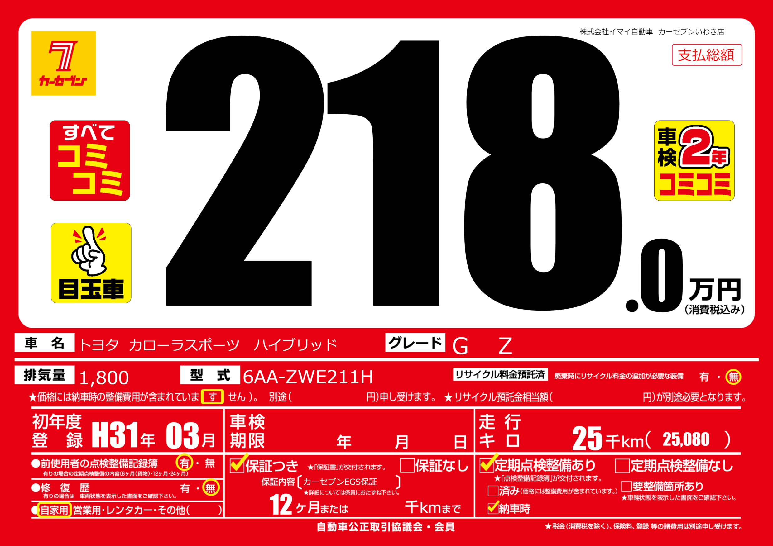 保証付き 保証内容(カーセブンEGS保証) 12ヶ月または千km |