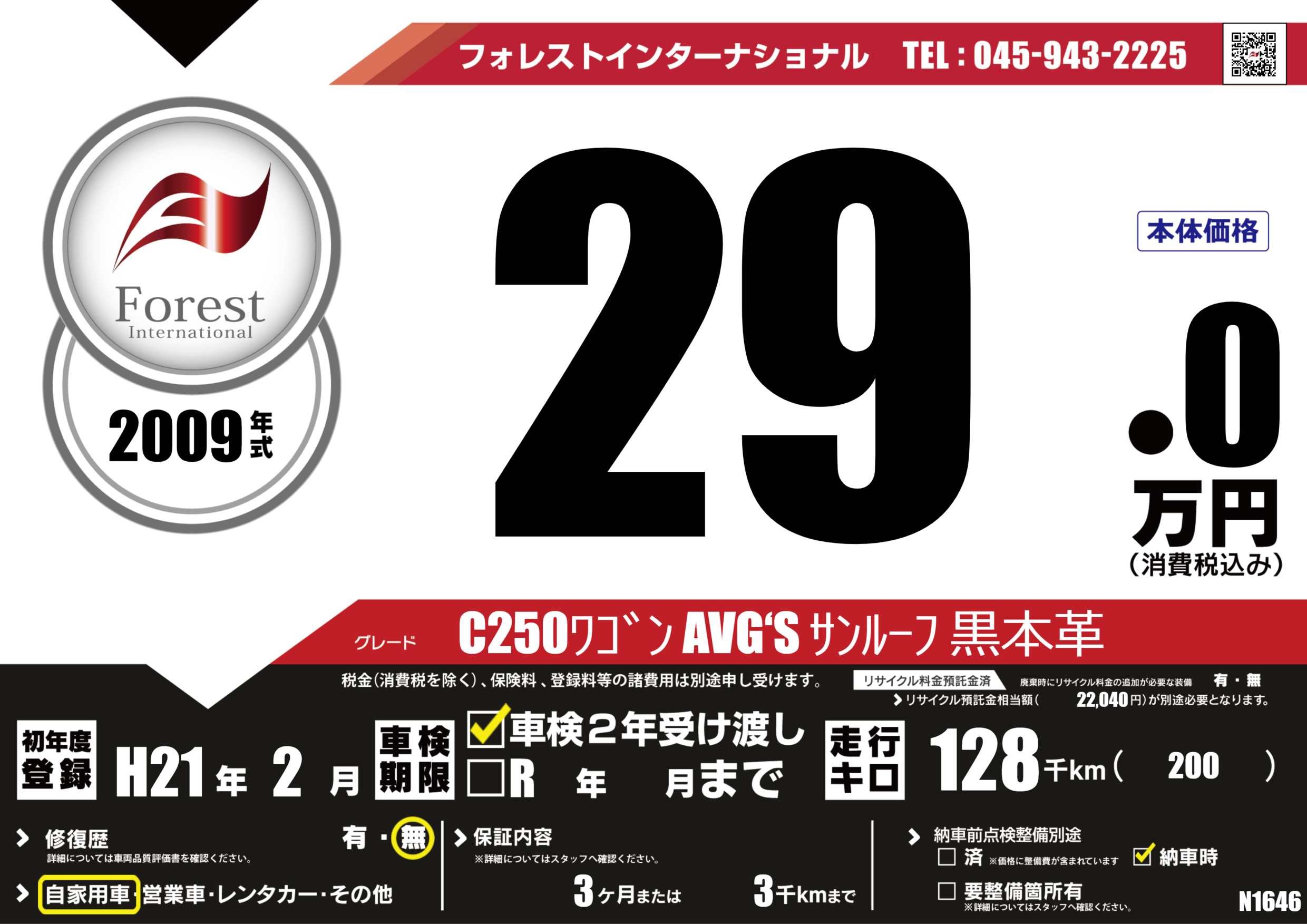 C250ワゴン AVG‘S サンルーフ 黒本革 |