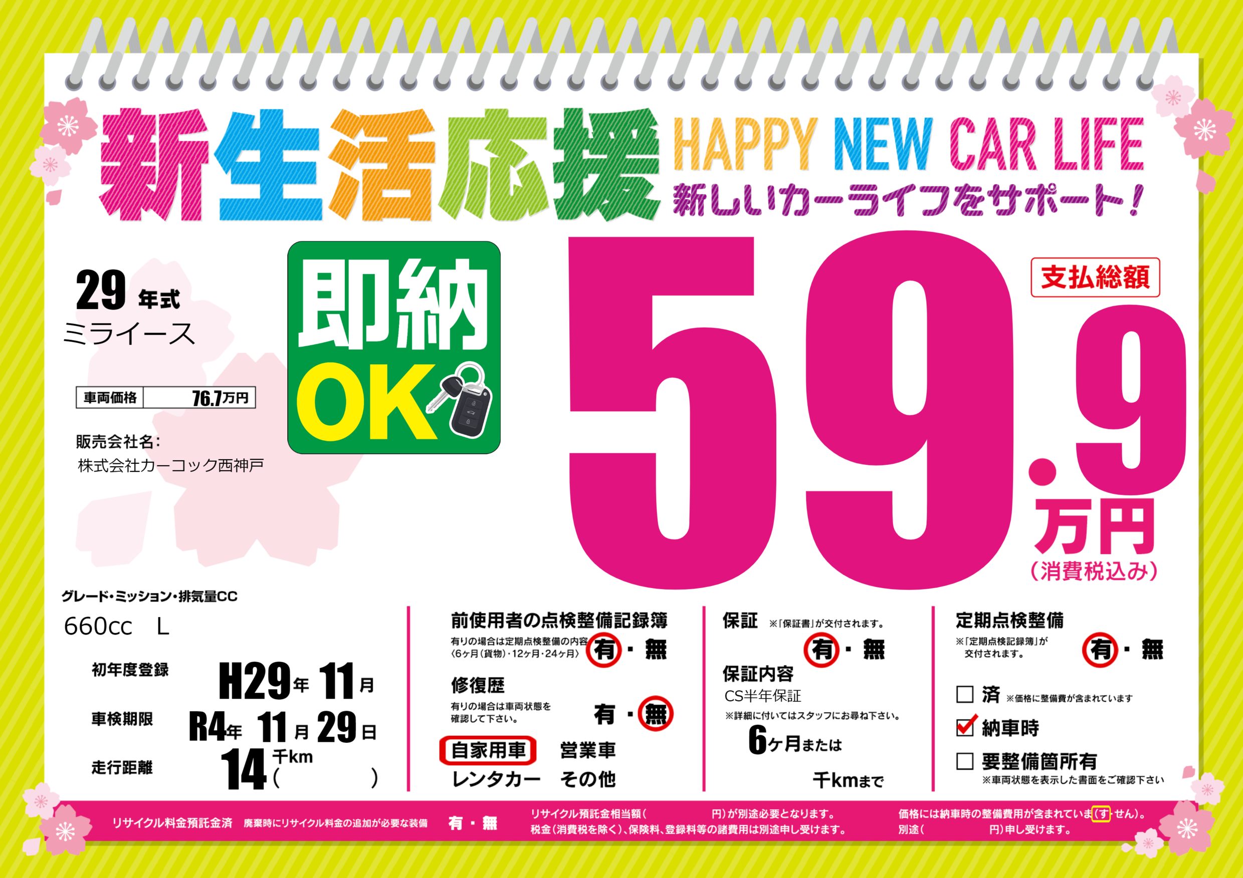 | 定期点検整備 | 定期点検整備あり 納車時あり | ||