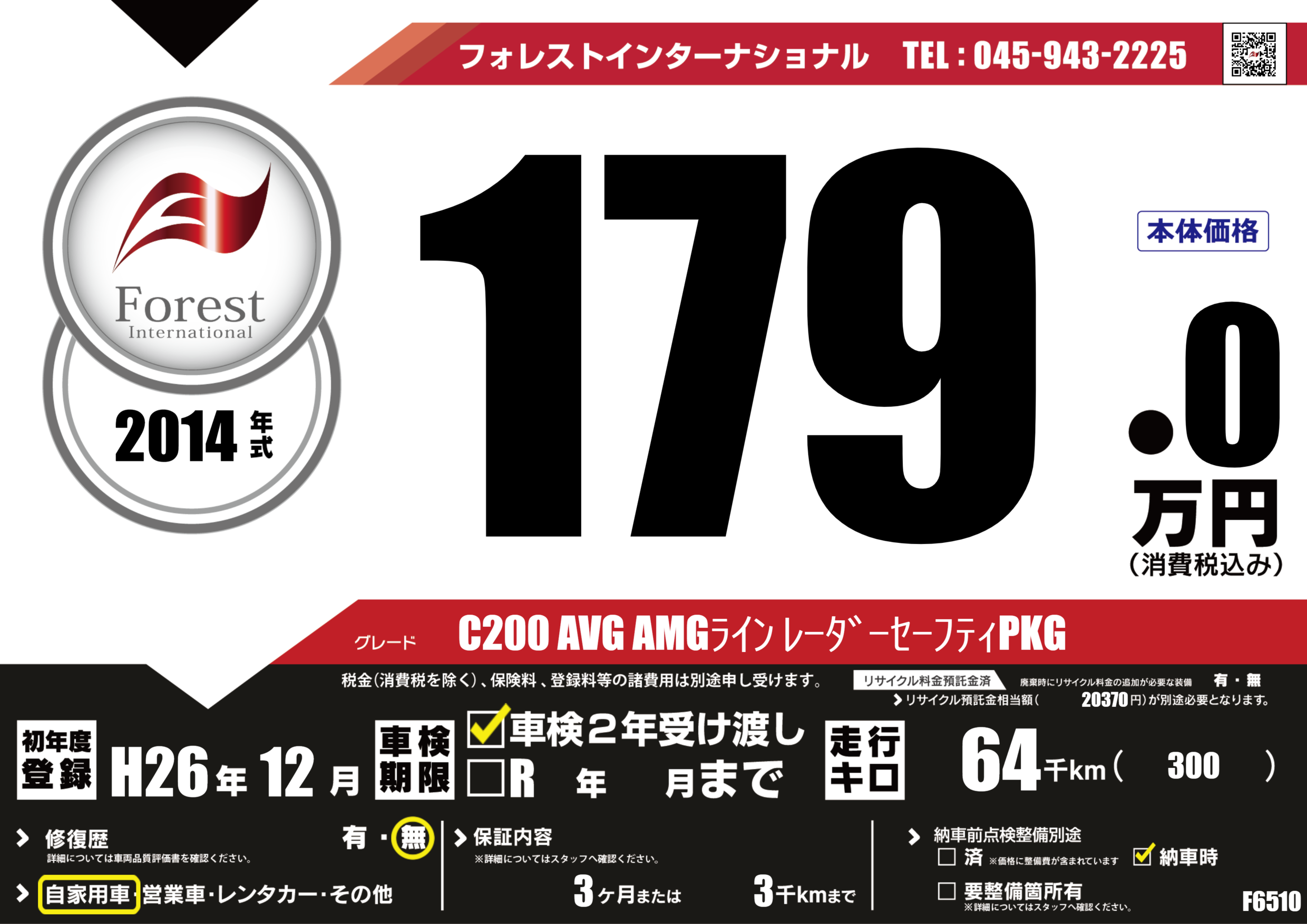 | 走行キロ | 6.4万km | 初年度登録 | H26年12月 |