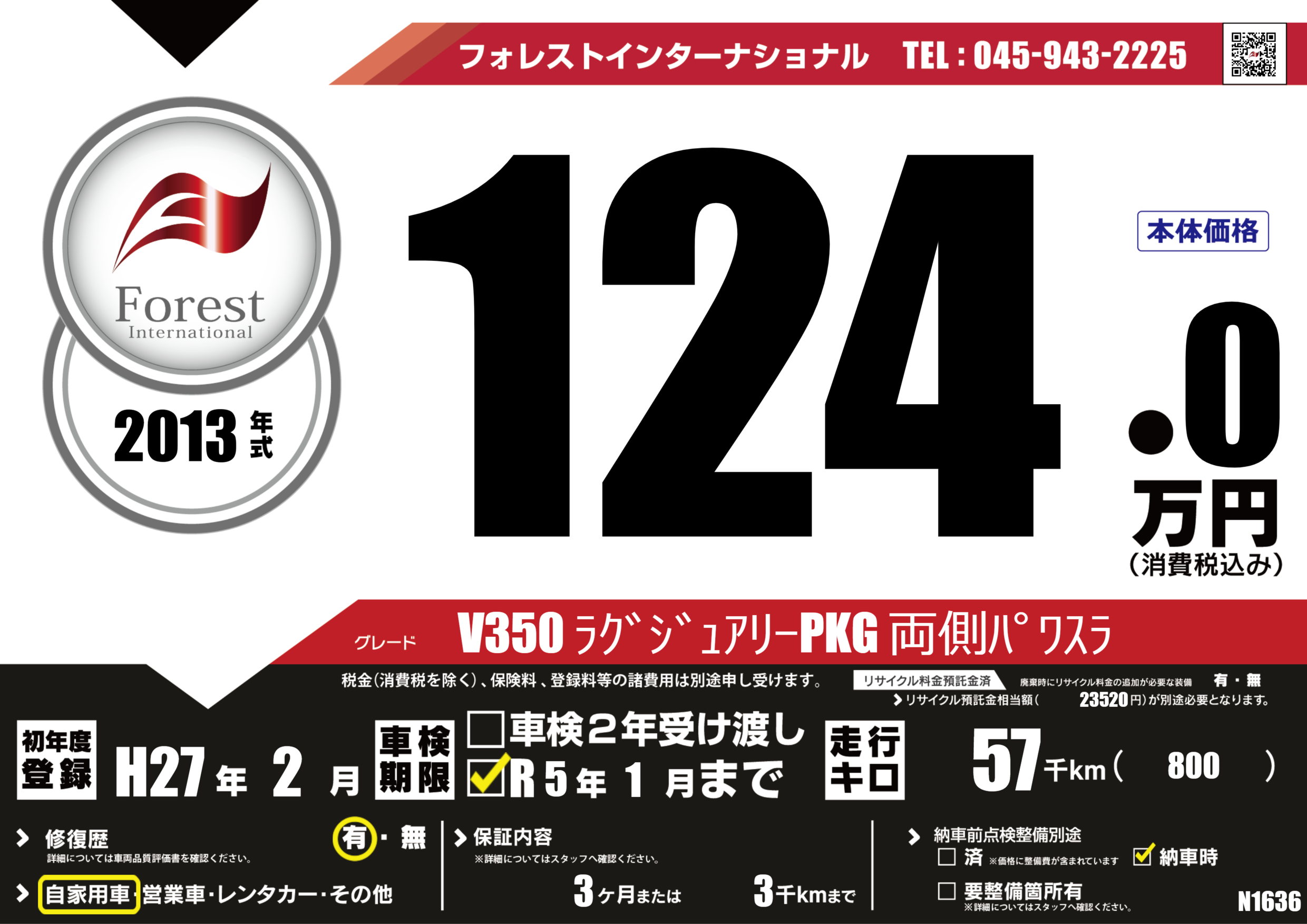 | 走行キロ | 5.7万km | 初年度登録 | H27年2月 |