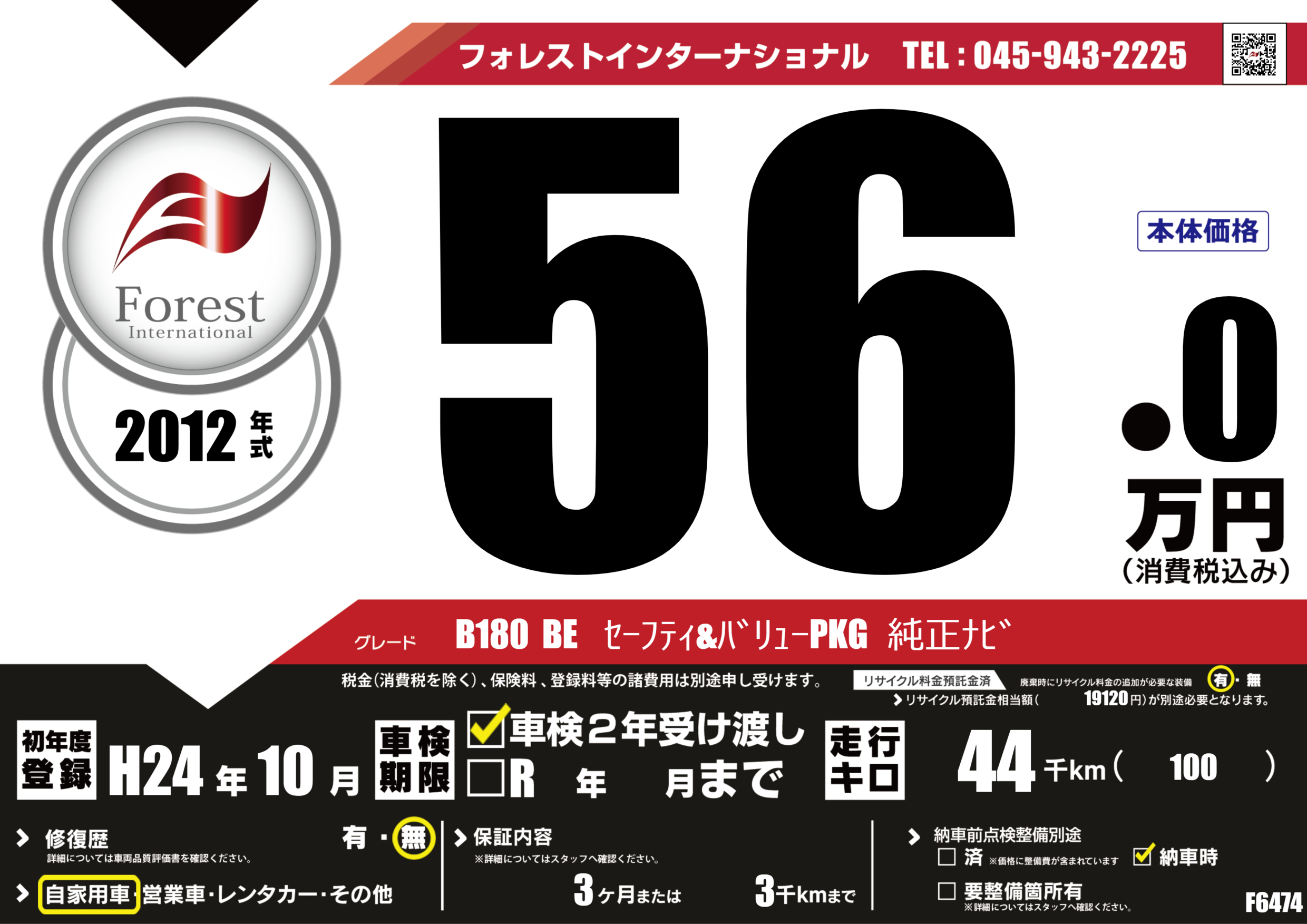| 走行キロ | 4.4万km | 初年度登録 | H24年10月 |