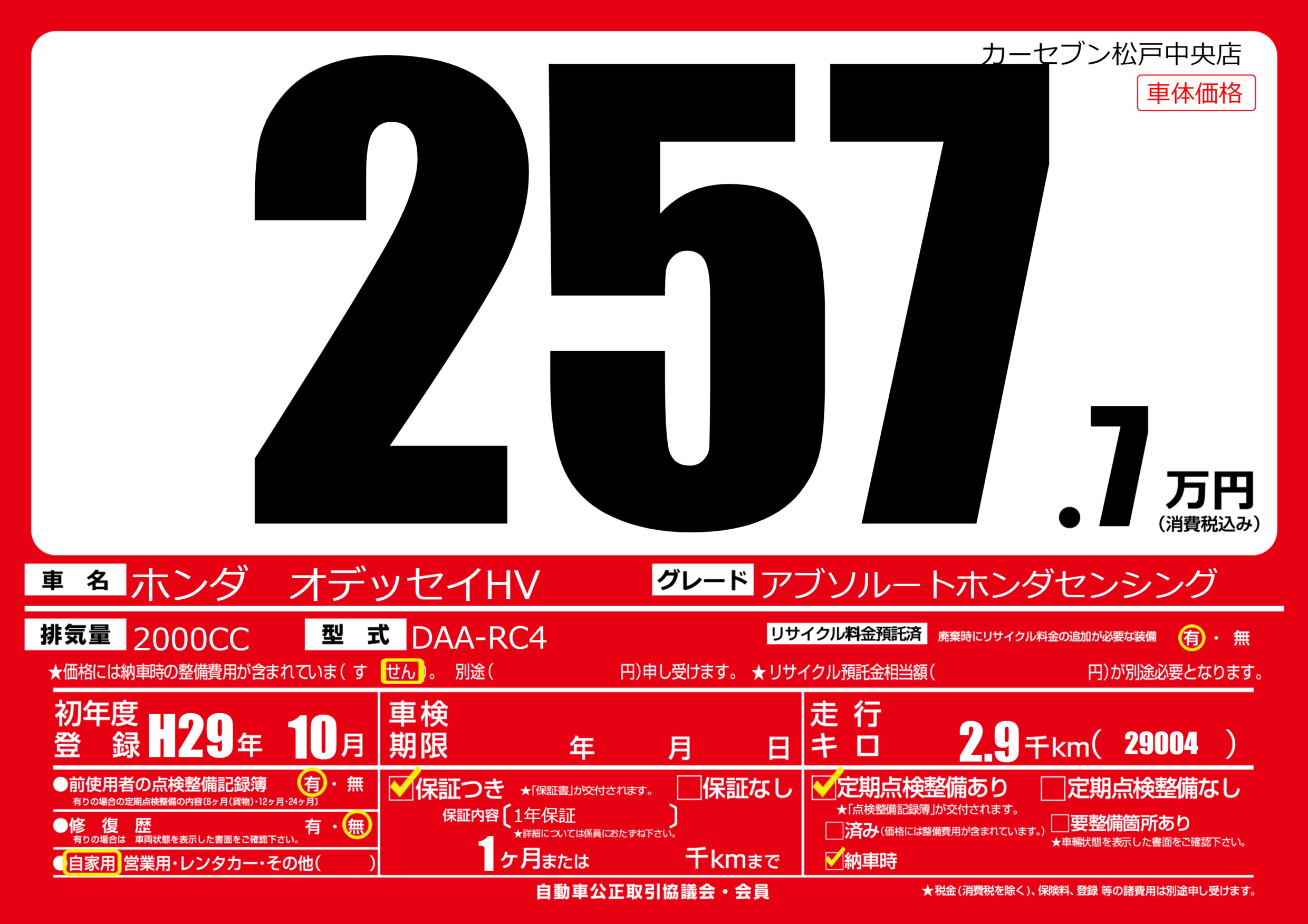 | 走行キロ | 0.2万km | 初年度登録 | H29年10月 |