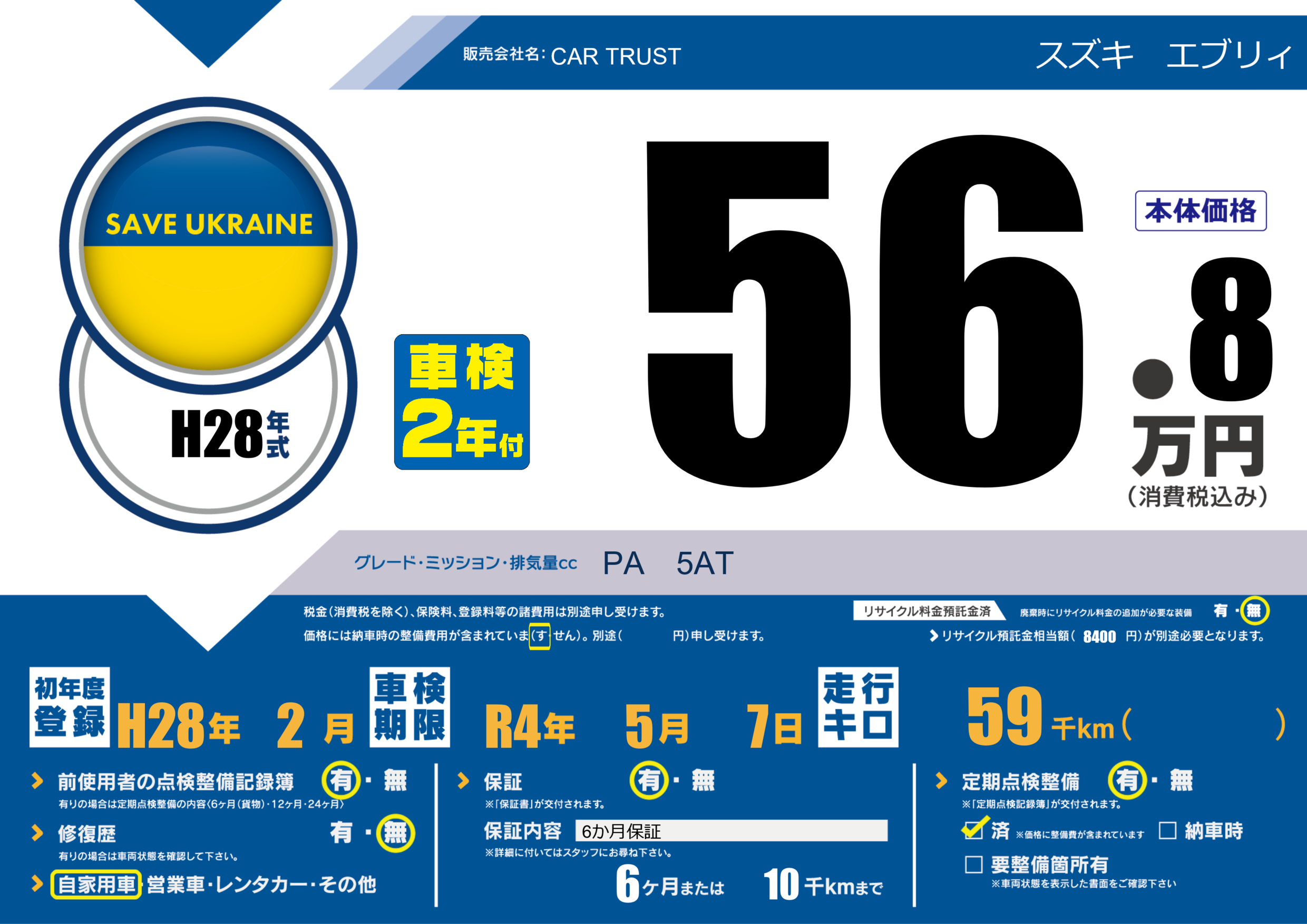 | 車名 | スズキ エブリィ | グレード ミッション 排気量 |