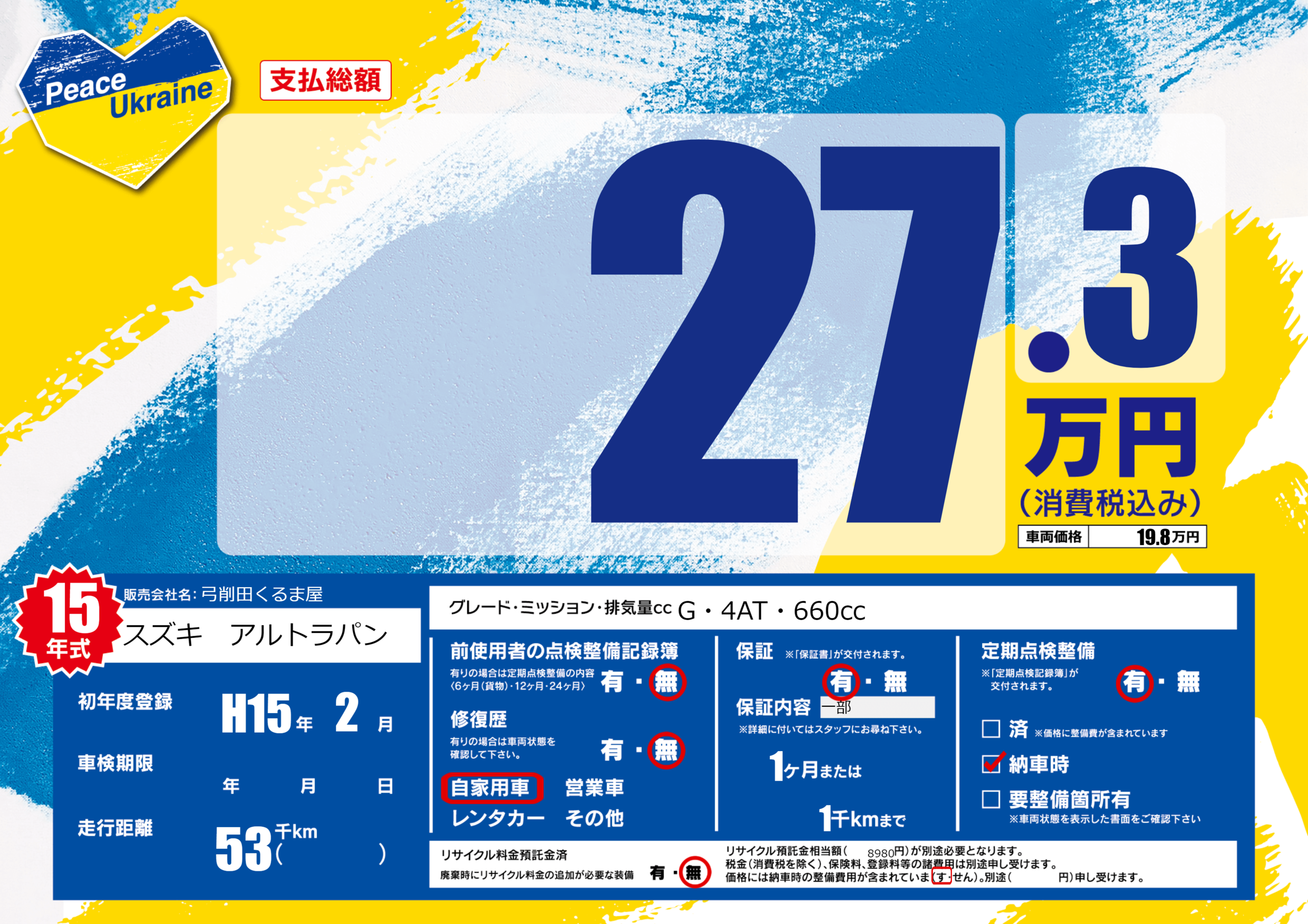 | 走行キロ | 5.3万km | 初年度登録 | H15年2月 |