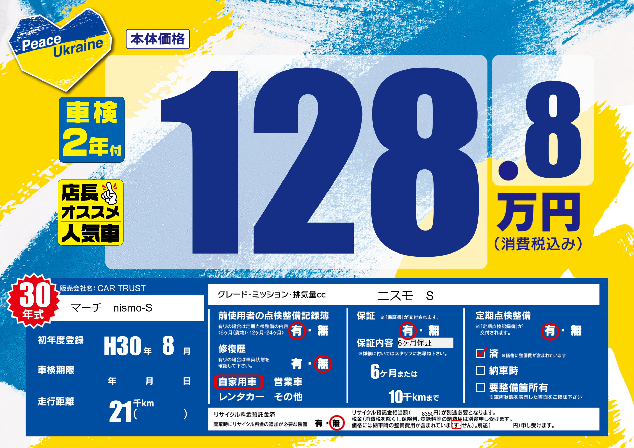 | 車名 | マーチ nismo-S | グレード ミッション 排気量 |
