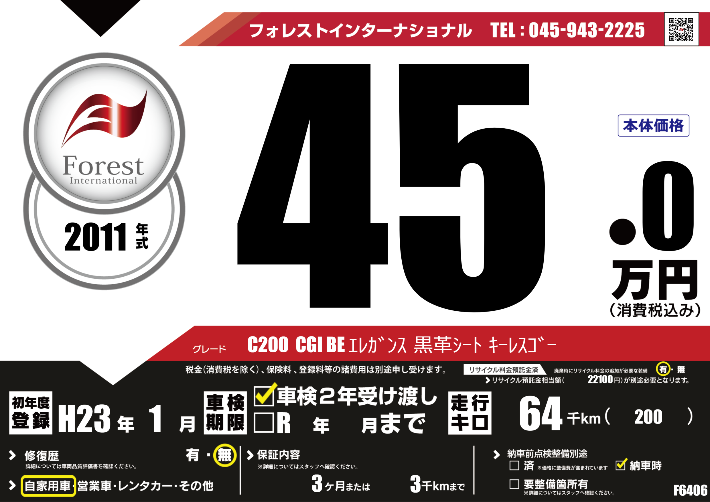 | 走行キロ | 6.4万km | 初年度登録 | H23年1月 |