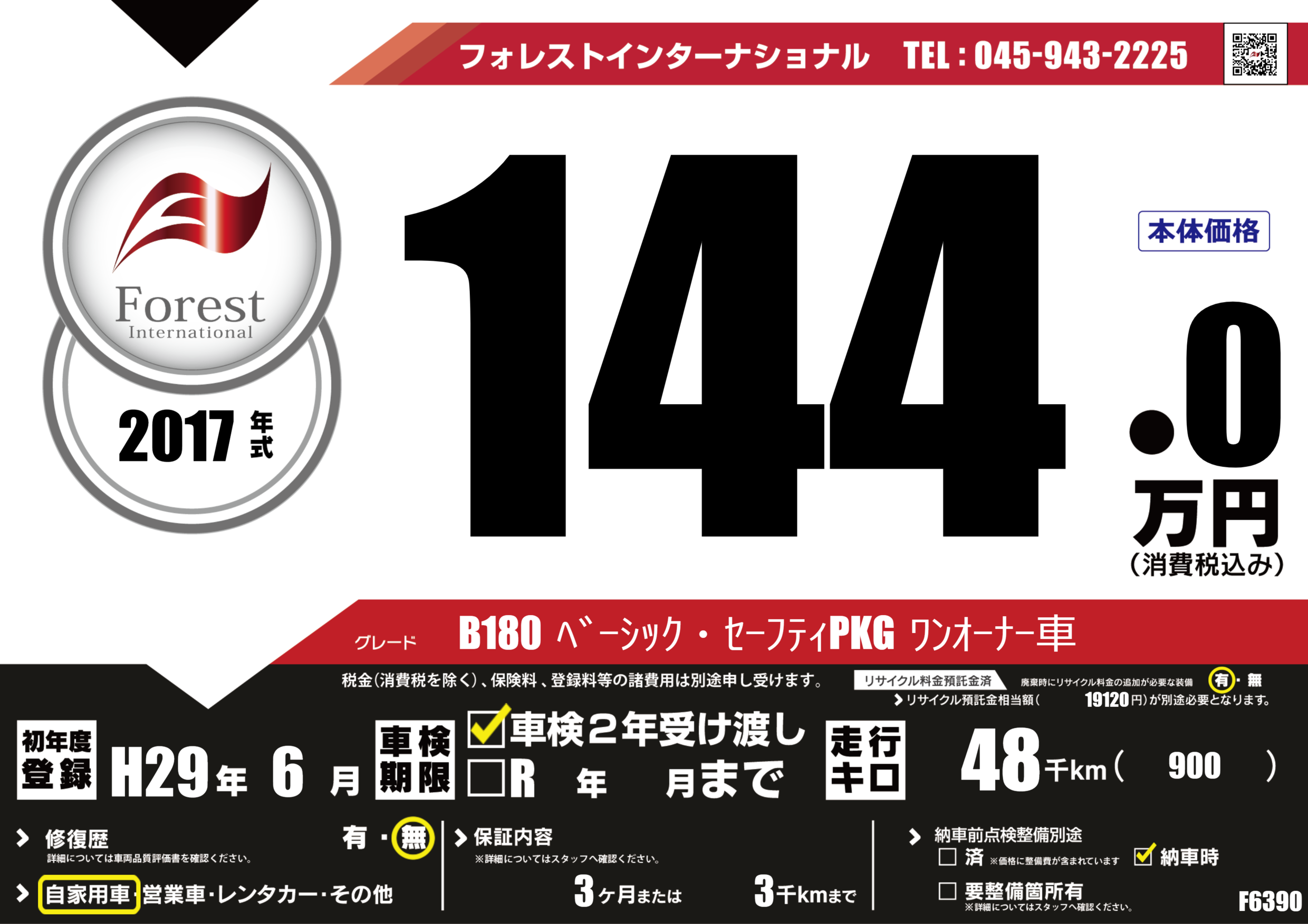 | 走行キロ | 4.8万km | 初年度登録 | H29年6月 |