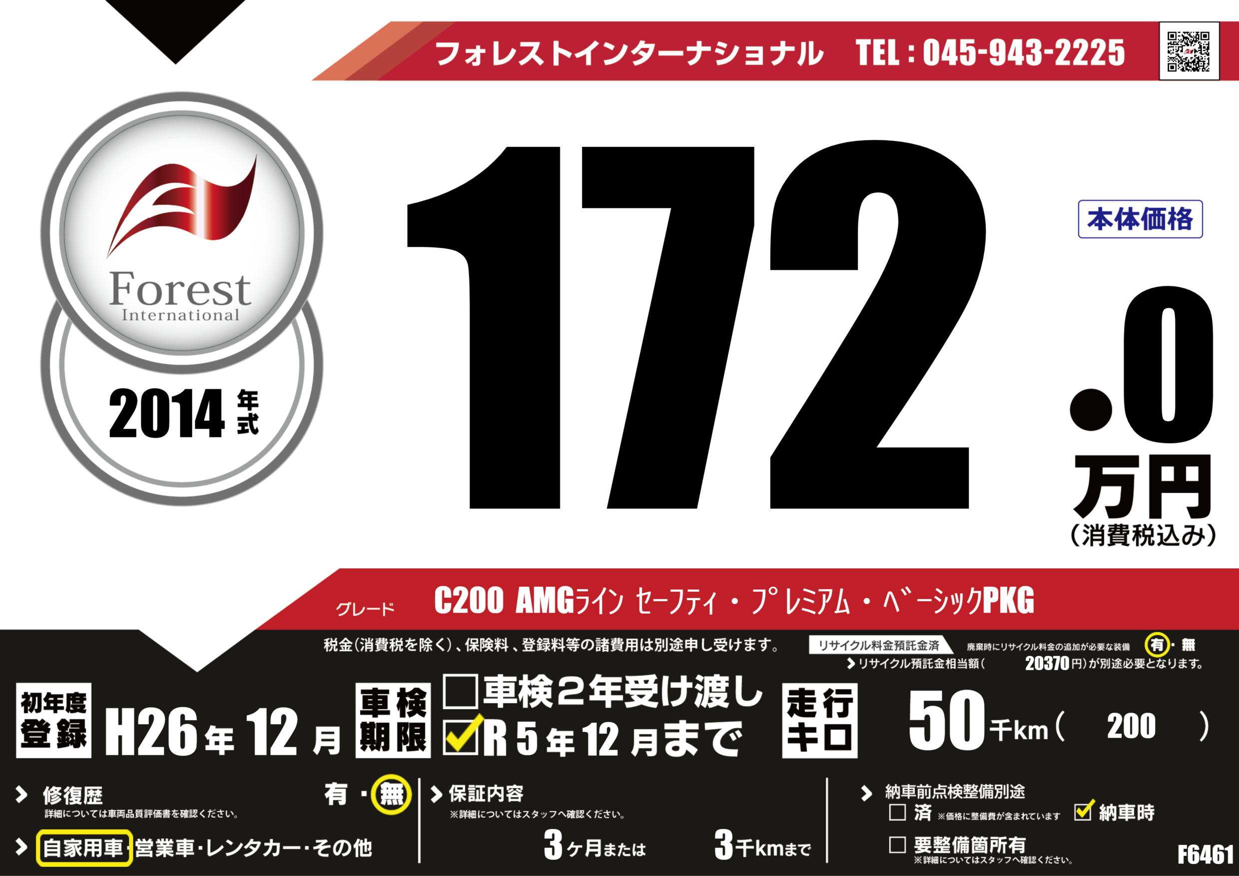 | 走行キロ | 5万km | 初年度登録 | H26年12月 |
