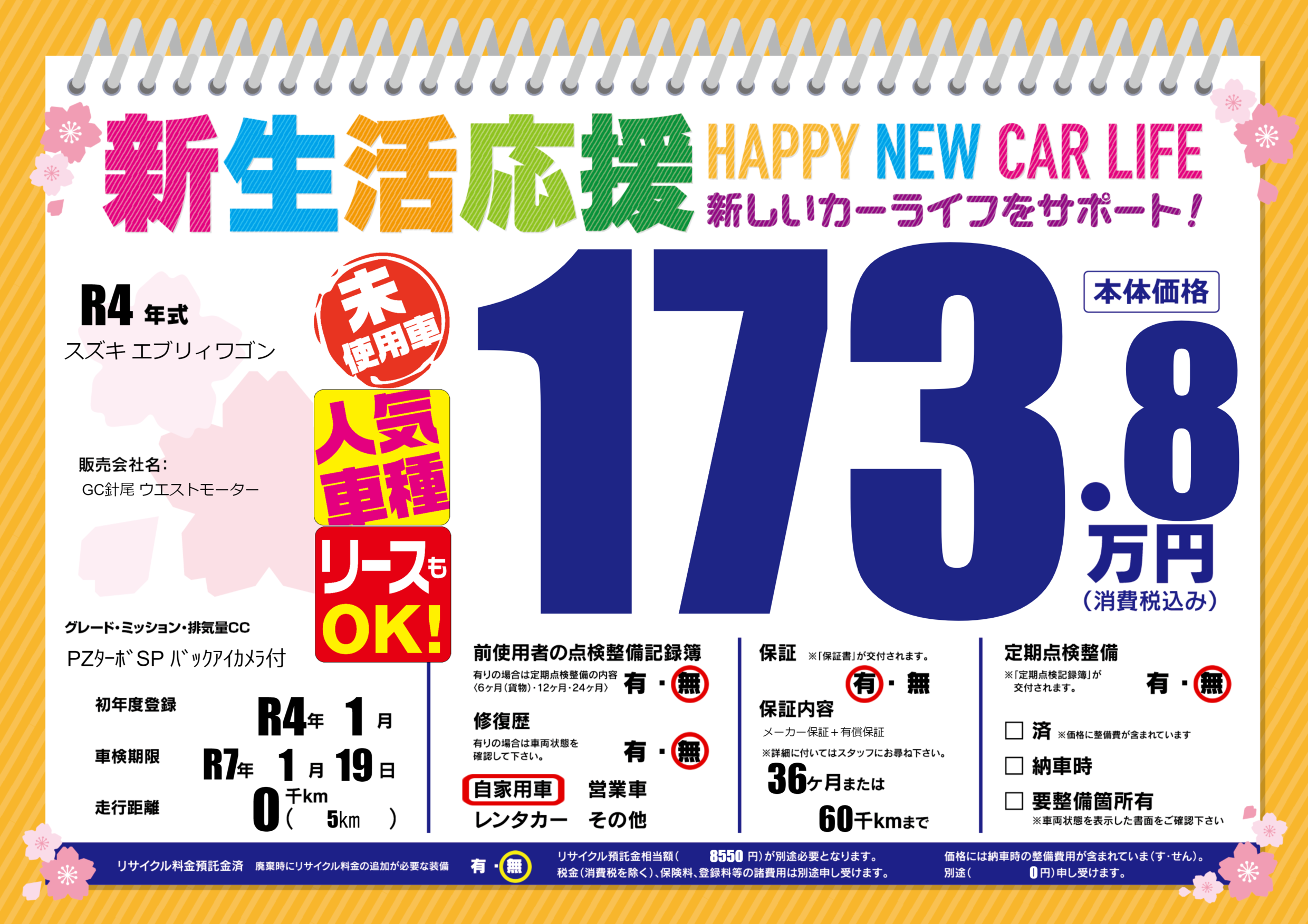 | 車名 | スズキ エブリィワゴン | グレード ミッション 排気量 |