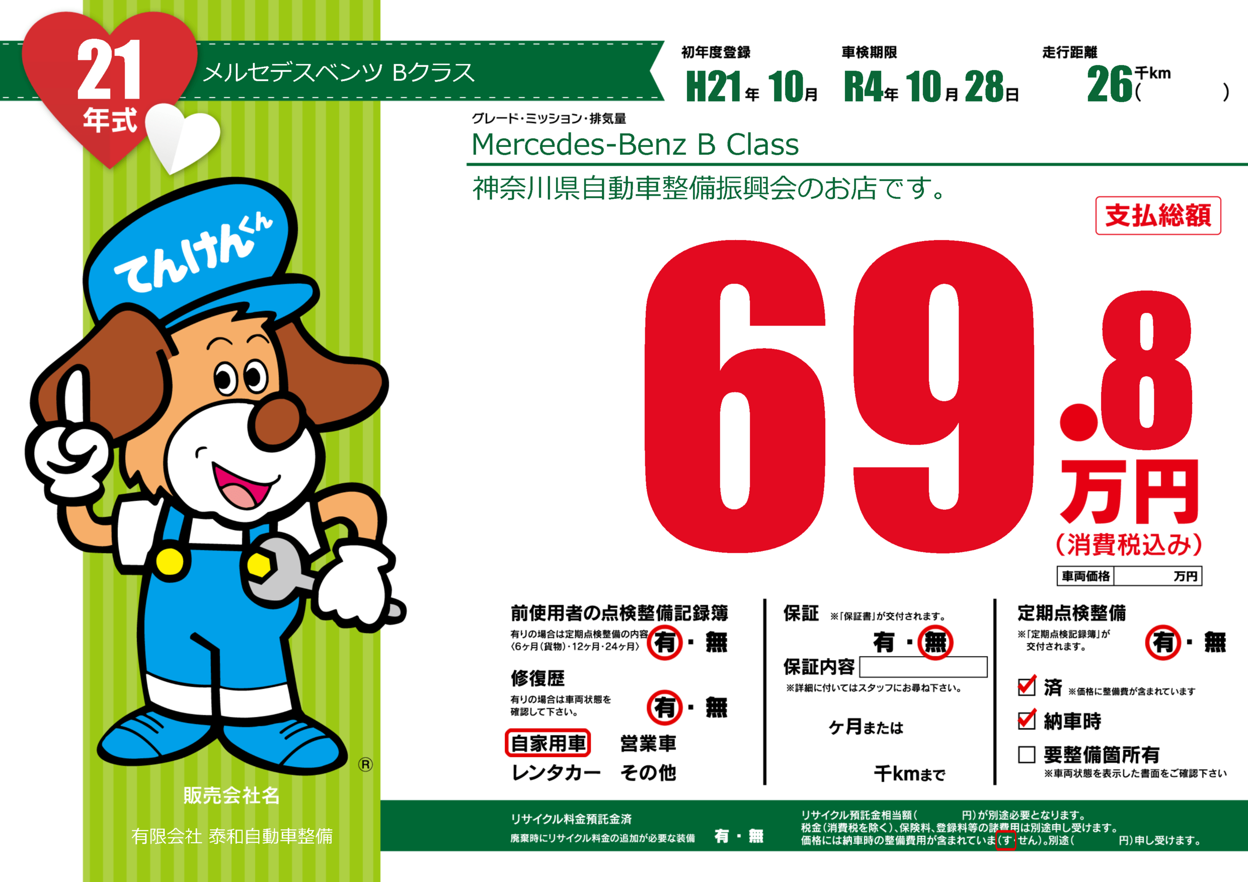 | 車名 | メルセデスベンツ Bクラス | グレード ミッション 排気量 |