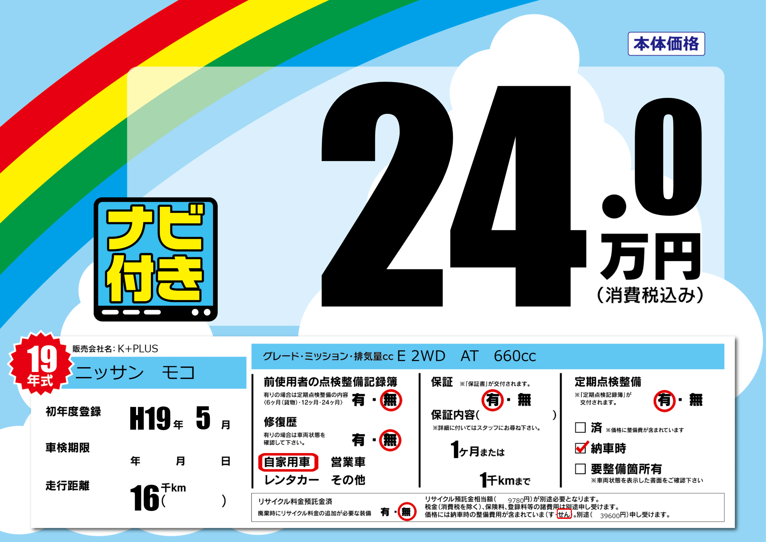| 車名 | ニッサン モコ | グレード ミッション 排気量 |