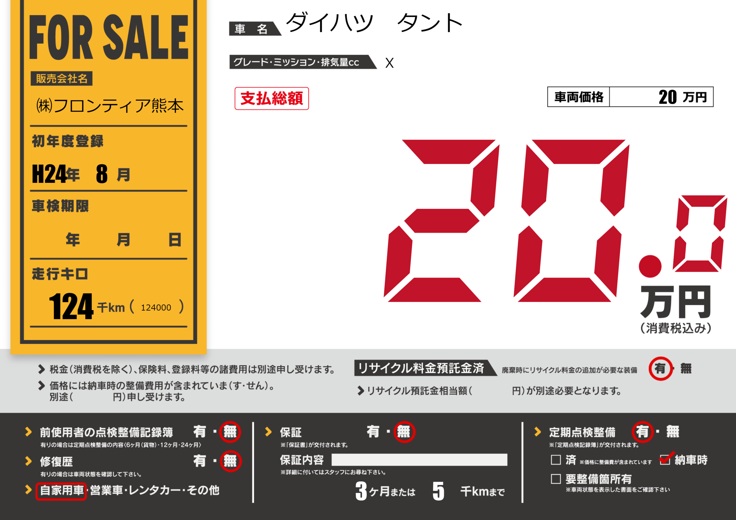 保証なし 保証内容(---) 3ヶ月または(5)千kmまで |