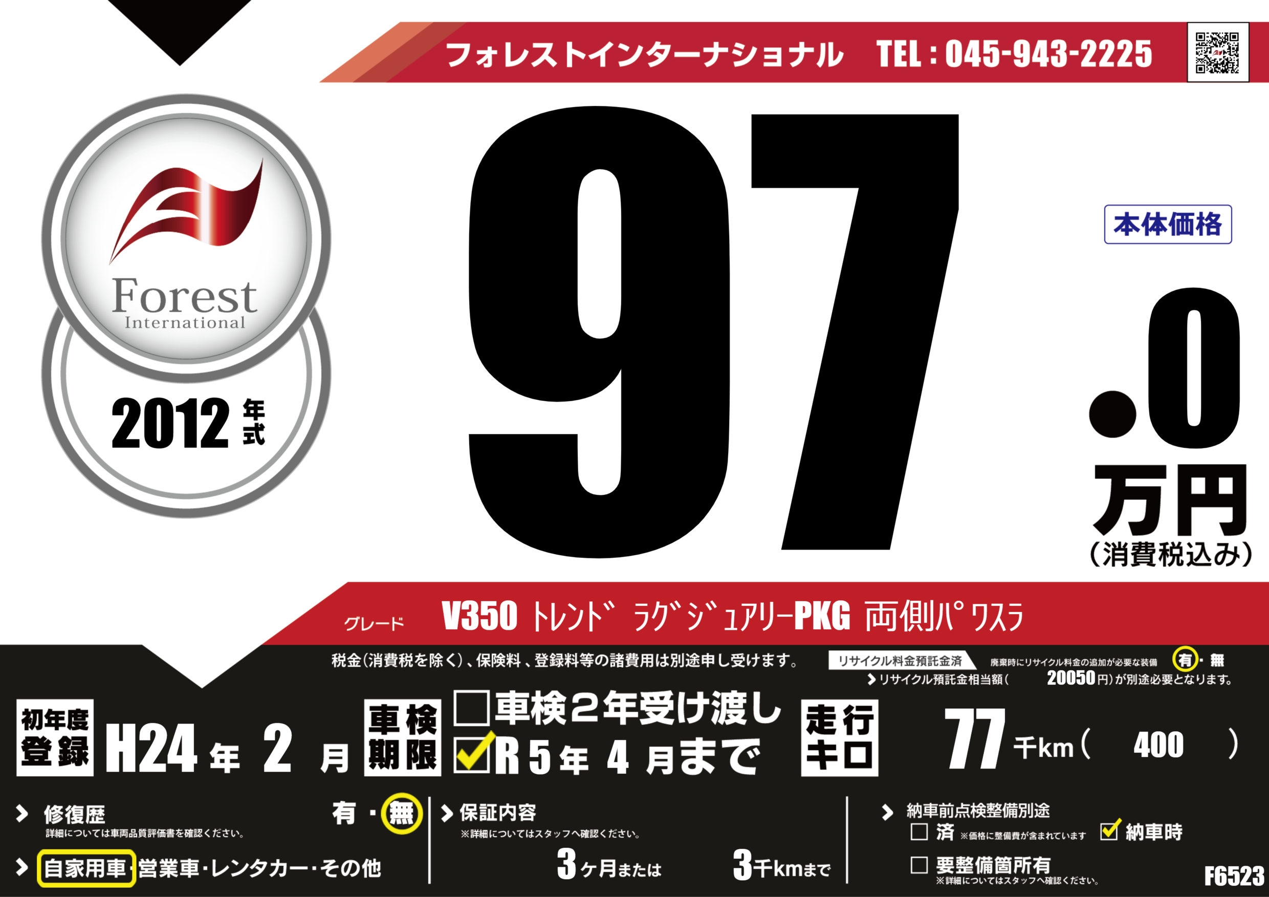 V350 トレンド ラグジュアリーPKG 両側パワスラ |